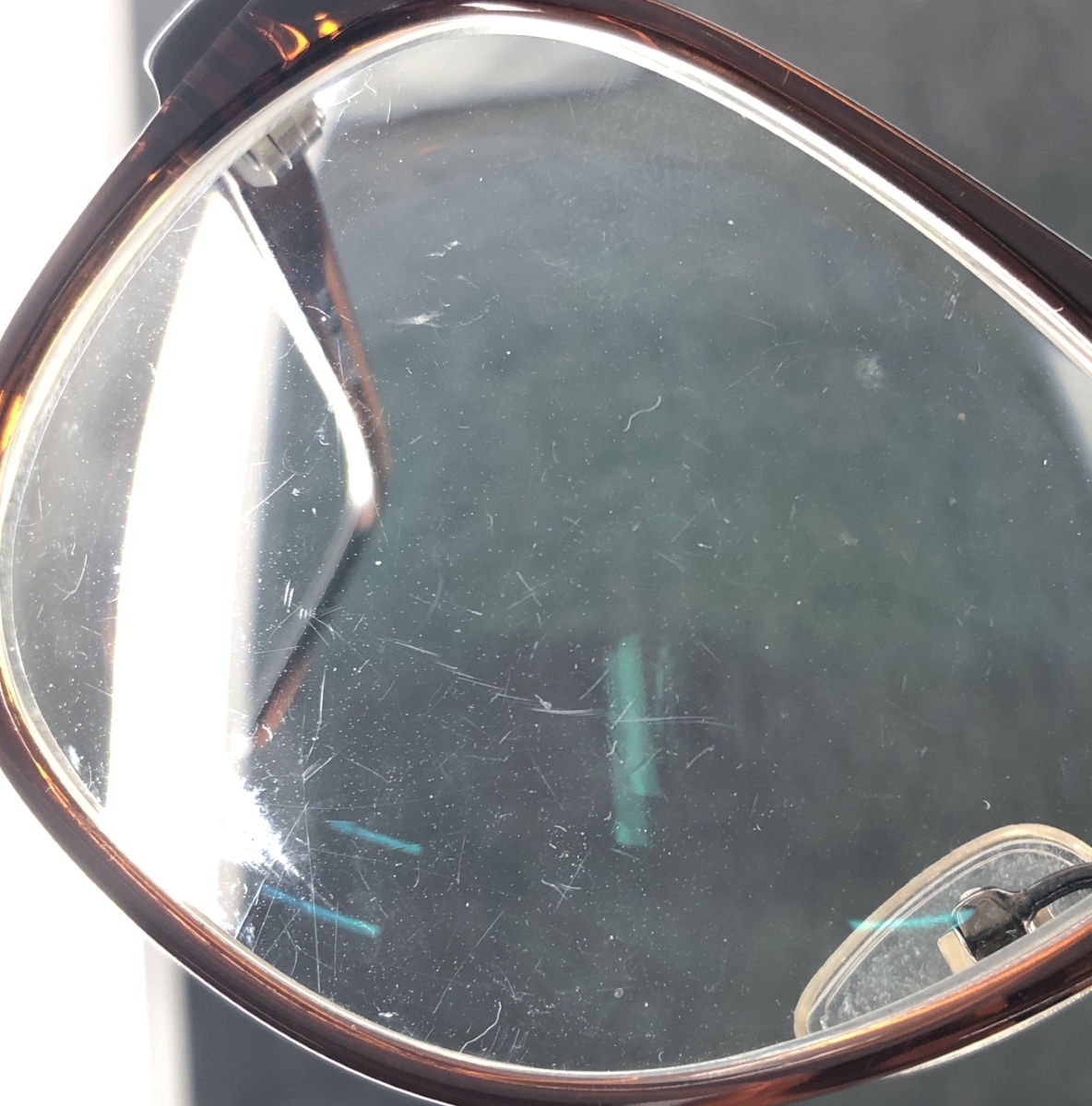 【フレーム】小キズ- 【レンズ】度あり(度数不明) /鼻パッド汚れ ※スレ傷や汚れがある場合はその一部分のみ撮影を行っております。画像に写っていない箇所にも同じようなスレ傷や汚れがある場合がございます。 |
