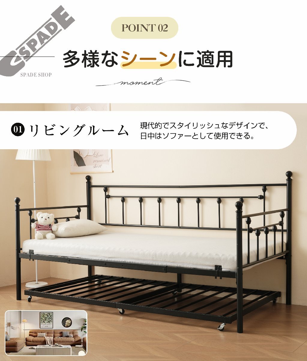 • 【部屋の圧迫感を抑えらる】高さのある2段ベッドと異なり、圧迫感を与えずに2つのベッドを設置することができる。エキストラベッド付き、引き出しやすくて、二段ベッドのような窮屈さを感じずに使用できる。