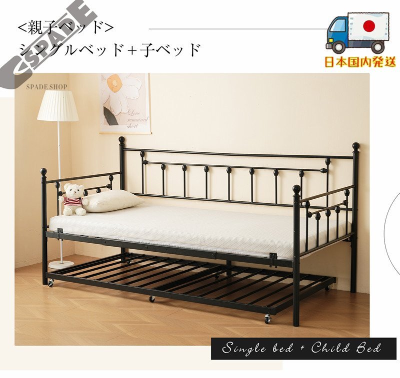• 【子ベッドにキャスター付き】出し入れ便利エキストラベッドを収納としてや足元を収納スペースに使う場合、キャスター付きで女の子も子供も移動らくらく!ストッパー付き大人でも子供でも寝るとき、安全性を配慮してストッパー付きキャスターでベッドの可動をロックにできる。※移動したいても、固定したいても、簡単に切り替えることができる。