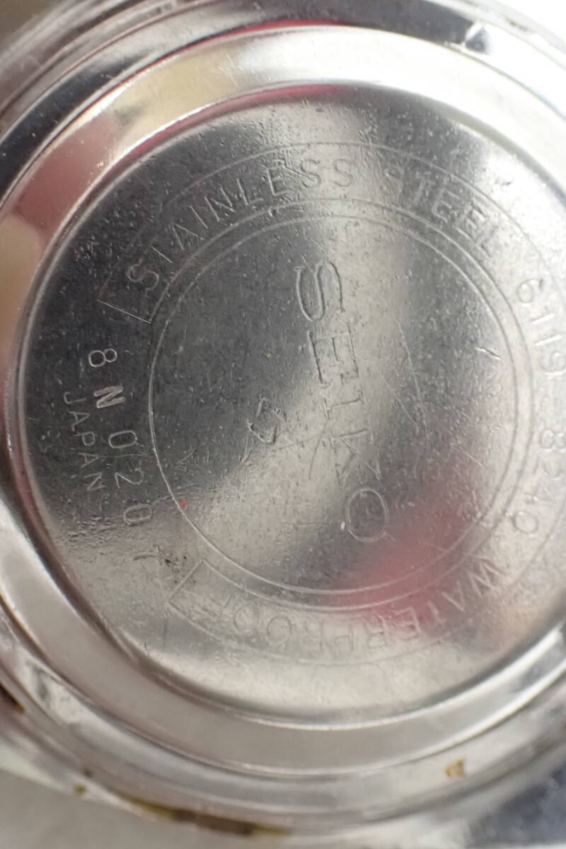 SEIKO セイコー5 ファイブ 21石 自動巻 腕時計 6119-8240 稼働品 定形外郵便全国一律270円 D2-MA 中古品です。 風防にスレや小傷、ケースやベルトにスレや小傷、錆や汚れの付着、ベルトの留め具が壊れていますので、カチッとはまらない状態です。 落札者様でのメンテナンスが必要になりますが、現状渡しとなります。 振ると稼働しますが、精度は不明です。 ○サイズ 文字盤 約4cm×約3.8cm(リューズ含む) ベルト幅 約1.8cm 腕回り 約15cm 重量 約90g ※素人採寸の為、多少の誤差はご了承下さい。 詳しい状態などは画像を参考に判断してください。 状態の説明はあくまでも出品者の主観ですので、神経質な方のご入札はお控え願います。 写真に写っている物がすべてですので、その他に付属品などはありません。 ※ご使用のパソコン、モニターなどの環境によっては実際の色と若干異なって見える場合がございます。 お探しの方はお見逃しなく! この機会にぜひどうぞ! ノークレーム・ノーリターンとなります。 よろしくお願いします。 特定商取引法に基づく表記 【会社名】 株式会社 西川殖産 【代表取締役】 西川 守 【古物営業許可】 兵庫県公安委員会許可 第631641300006号 【店舗】 エタニティ野里店 【営業所所在地】 兵庫県姫路市野里311-3 アクロポリスⅡ-1F 【連絡先】 079-222-7705 【営業時間】 午前10時~午後7時 【定休日等】 水曜日は定休日となっておりますので、火曜日の夕方から水曜日にご入金、ご連絡などをしていただいた方へのご連絡・発送などは翌日以降となってしまいます。 オークションにつきましても、火曜日の夜から水曜日にご落札していただいた方へのご連絡は翌日以降となってしまいます。 ※その他、GW・お盆・年末年始などもお休みを頂いておりますので、その期間中などもご連絡・発送などできません。(※休みの期間はその都度異なりますので、お急ぎの方は事前にご質問などでご確認していただけますよう、よろしくお願いします。) こちらの都合で誠に申し訳ありませんが、あらかじめご了承いただいた方のご入札をお願い致します。 | |||