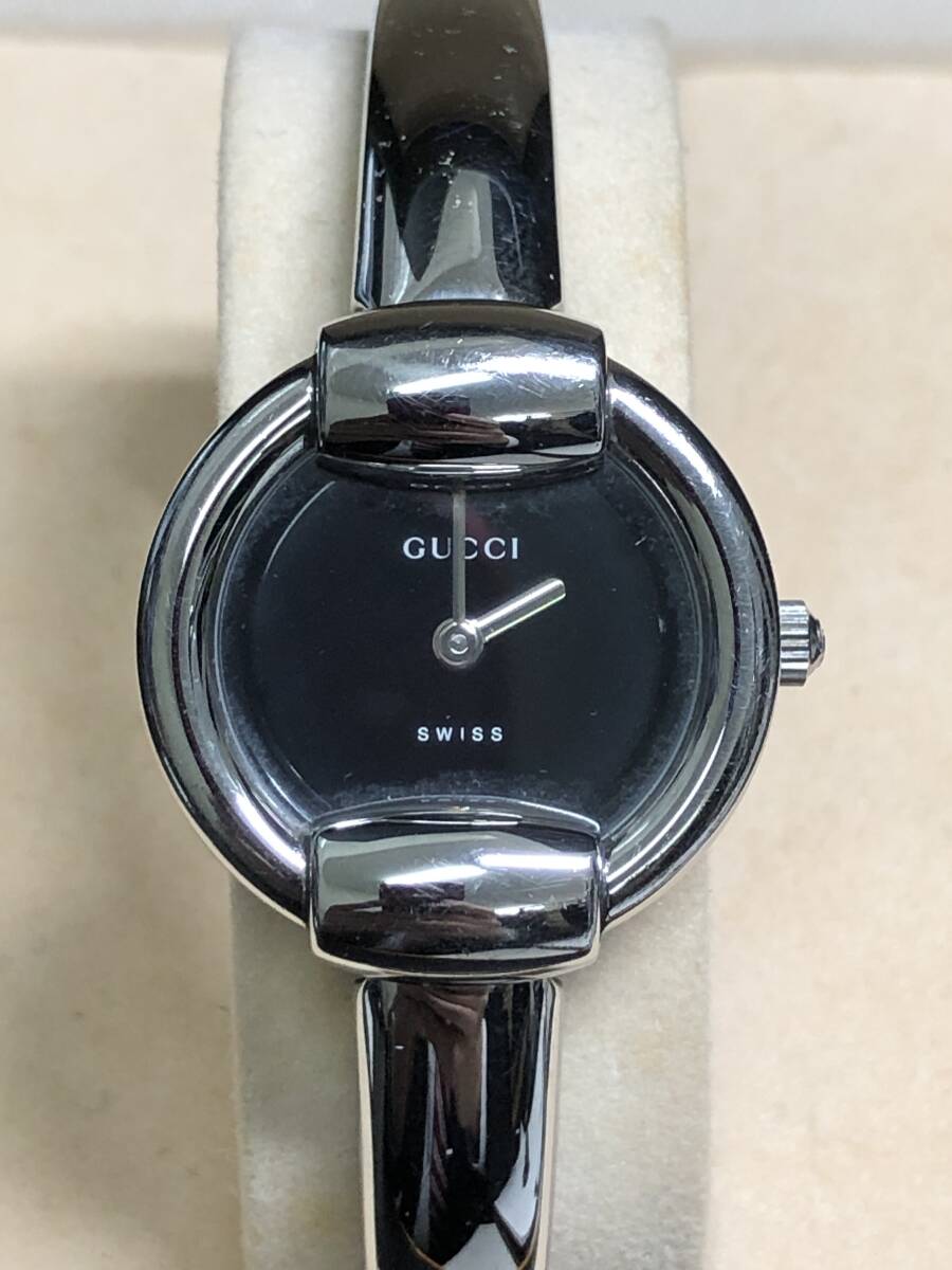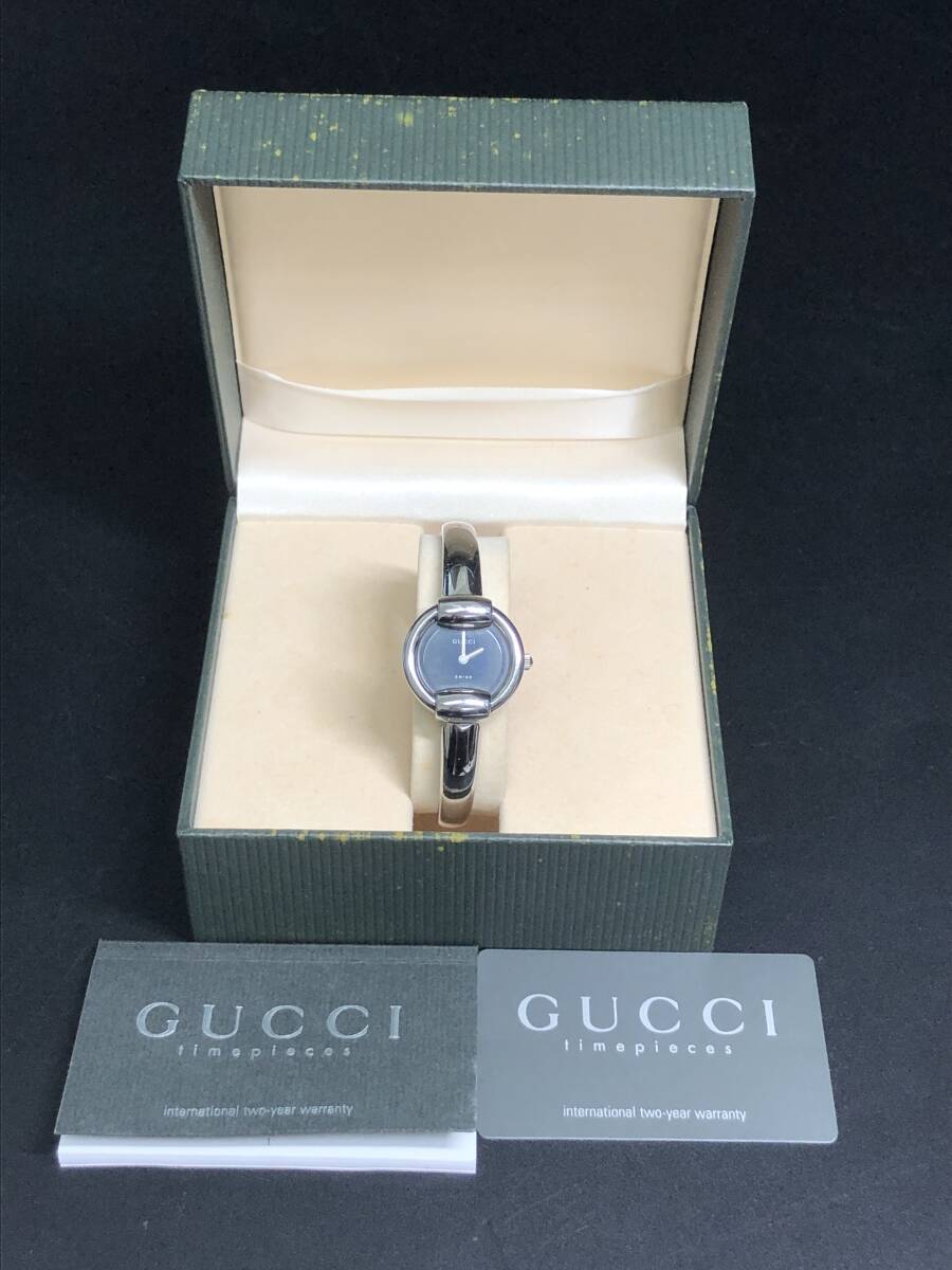 【1円スタート】GUCCI グッチ レディース 腕時計 1400L SS ブラックダイアル バンクルウオッチ 箱/取説/保証書付