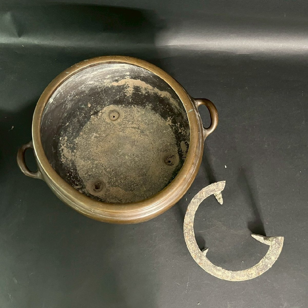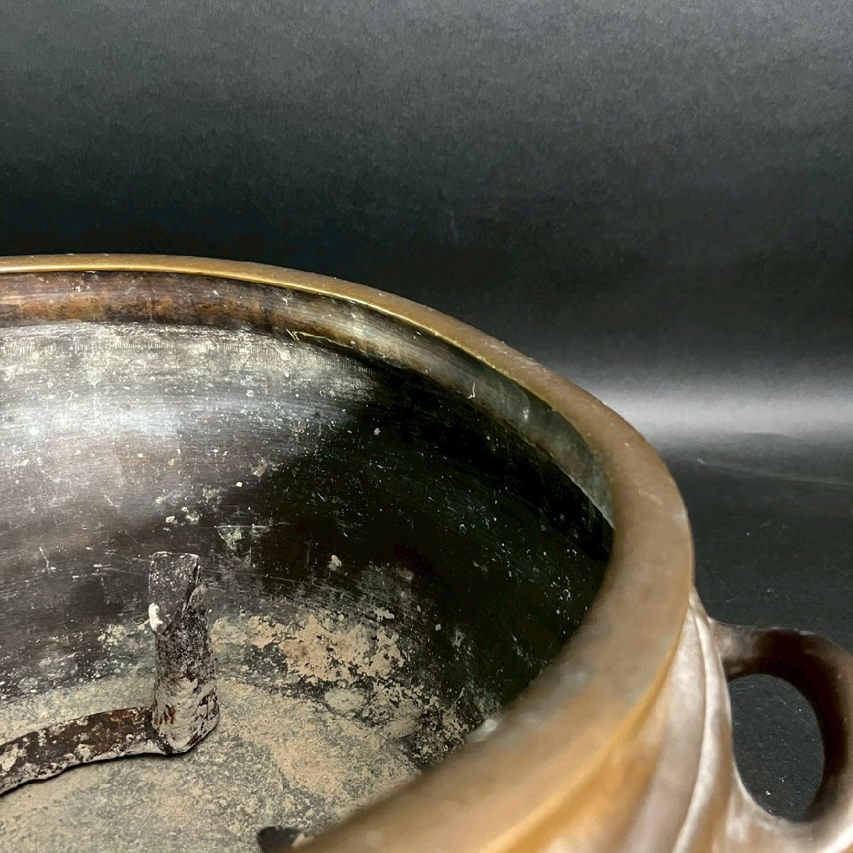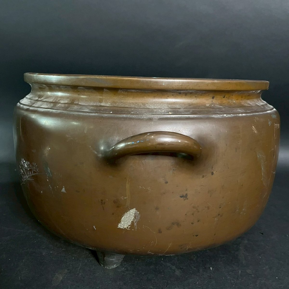 CV1021-59-3 火鉢 鉢 茶道具 銅器 銅製 鷹 彫刻 大型 炭火 伝統 工芸 骨董品 時代物 古民具 古道具 高さ24㎝ 口径36㎝ 120サイズ