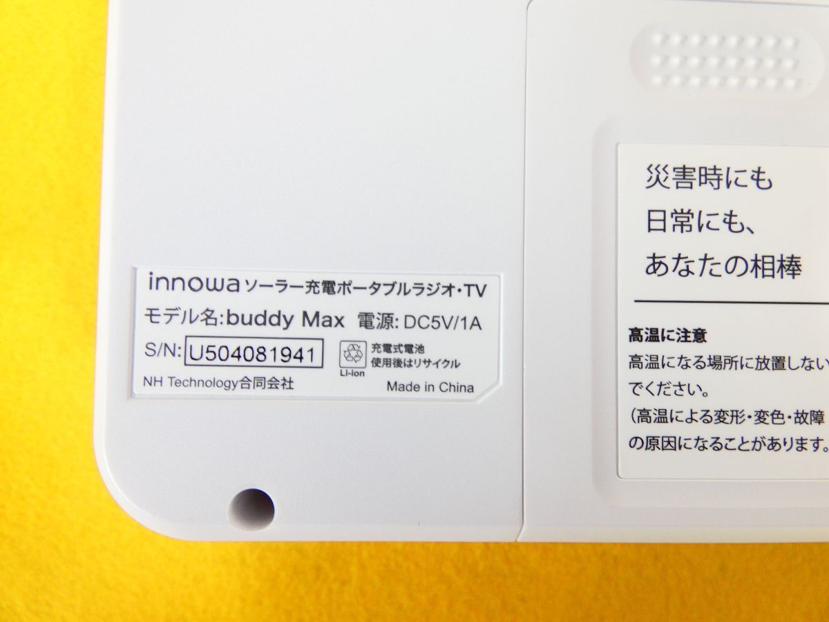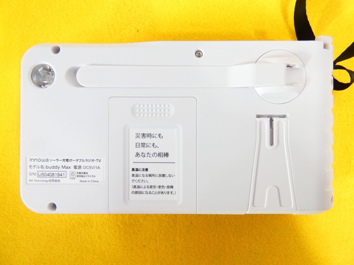 | 【 (ITJ-41) innowa イノワ buddy Max 手回し ソーラー充電 ポータブルテレビ・ラジオ AM/ワイドFM/短波 5インチ大画面 4WAY電源 LEDライト@60(10) 】 ※基本的に金曜午後、土曜、日曜はオークションに関する連絡、発送等全般の対応は行っておりません。翌月曜日から順番になります。対応が遅れる場合が御座います。予め御了承下さい。 (金曜日終了日分の場合も翌月曜から対応です。) ※一番下の「ご注意事項」まで全てお読みになり、ご検討、ご入札をお願い致します。 ■状態:中古品です。 各動作確認済みです。 譲り受けた物で使用期間等不明です。 目立った傷みはありません。 あくまでも中古品です。ご理解の上ご検討をお願い致します。 ※付属品に関しては画像にてご確認いただけるものが全てとなっております。 ※タイトル最後尾の()内は当方の番号です。 素人の目視確認の為、見落としがある場合もございます。 クリーニングはあくまでも簡易的なため、細かな汚れやホコリが付着した状態でお渡しする場合もございます。 ■元払い 発送予定サイズ 60 ※送料は下記に記載しております。該当するサイズの欄をご参照下さい。 ※タイトルの『@』後の数字は目安の梱包サイズです。 未梱包の為あくまでも目安です。 ※梱包サイズは誤差が生じる場合がございますが、あくまでも出品時に記載したサイズで送料をご請求させて頂いております。 必ず送料を下記の表にて御確認の上、御検討、御入札をお願い致します。 ※お支払いはかんたん決済のみになります。 ※同梱に関しましては同日終了日分(同梱可能サイズ160 / 23㎏迄)のみとさせて頂きます。 送料は同梱サイズにより変動致します。 ゆうパック取り扱い不可商品との同梱の場合は佐川急便での配送となります。 ※配送業者、発送方法の変更は承れませんのでご了承願います。 ※送料は下記に記載しております。該当するサイズ、地域の欄をご参照下さい。 ※下記の【ご注意事項】を御覧頂き、御了承、御理解の上御入札、御検討を御願い致します。 |