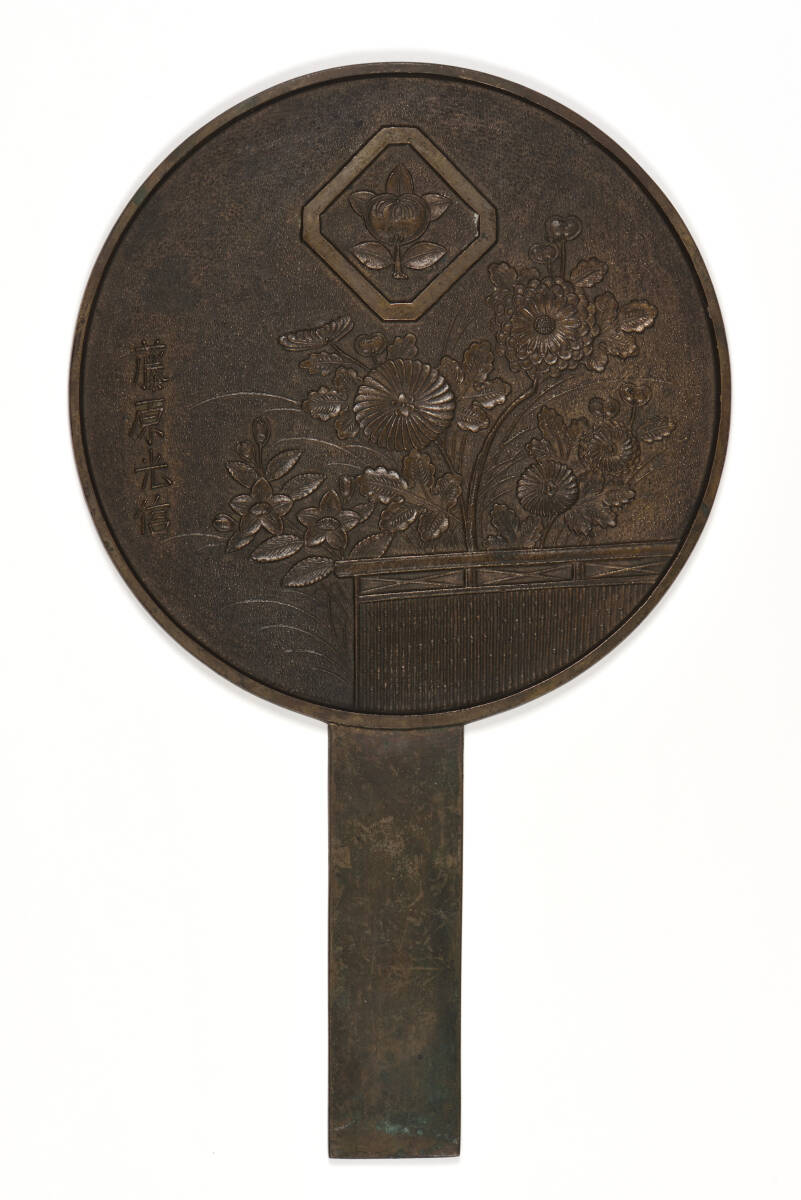 『柄鏡 藤原光信 菊桔梗紋 家紋入』
