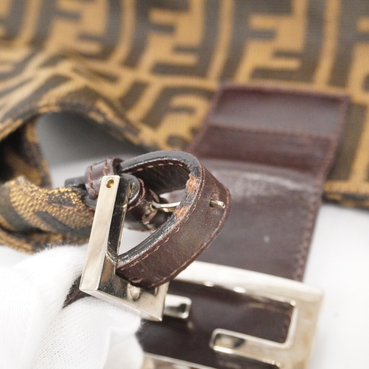 【5md4502】フェンディ ハンドバッグ ズッカ ナイロンキャンバス ブラウン シルバー金具【中古】レディース