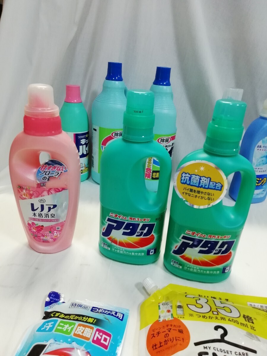 液体洗たく洗剤、柔軟剤、漂白剤のボトル・詰替え用10点のまとめ売りです。すべて未使用長期保管品です。