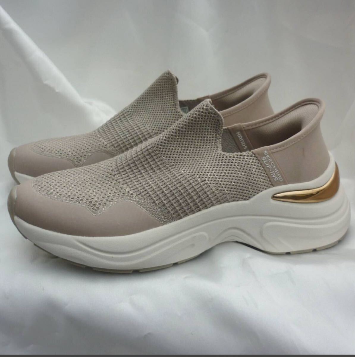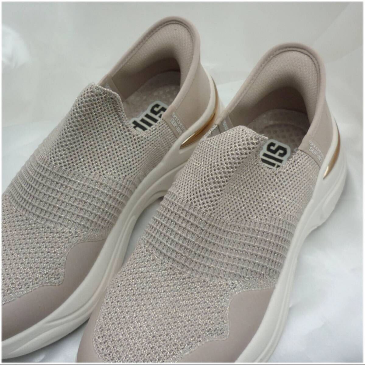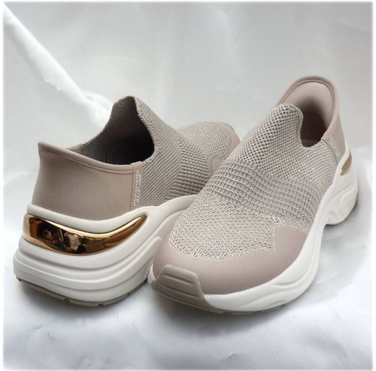 定価12650円新品23.5cm★スケッチャーズ ベージュ キラキラゴールド+ゴールド スリップインズ スリッポン スニーカー