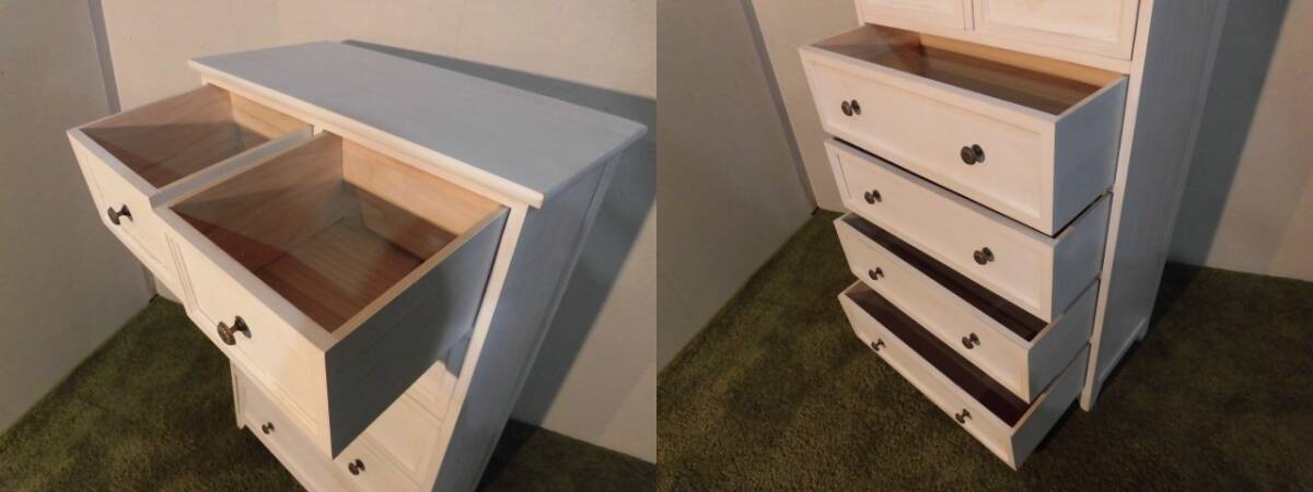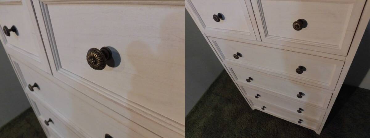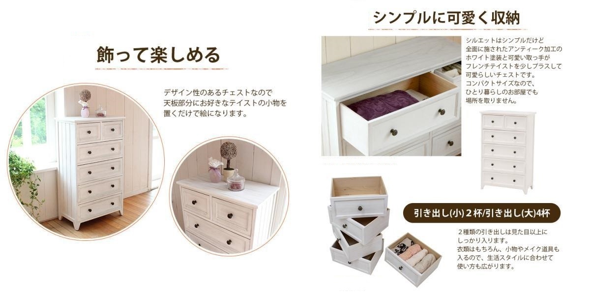 ■商品名■ 天然木アンティーク調【シャビー】ハイチェスト5段 ■商品ランク■ ほぼA【展示品/新品】 展示品の為画像では確認できない程度の傷有り ■サイズ■ |