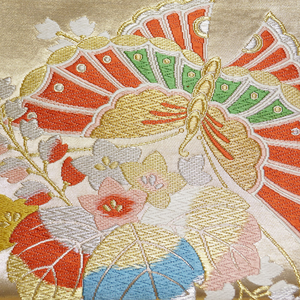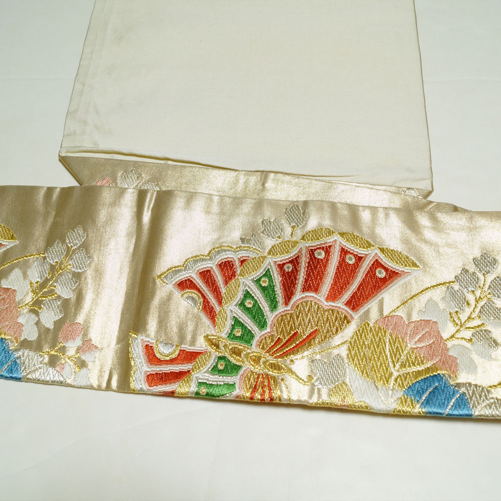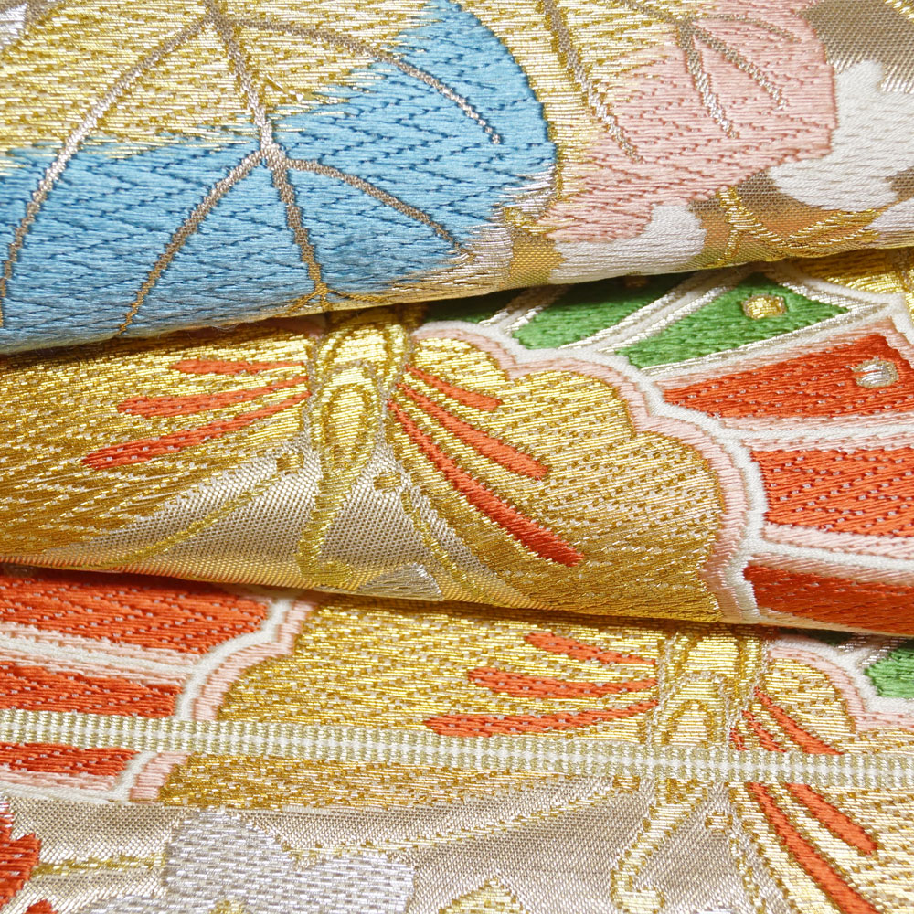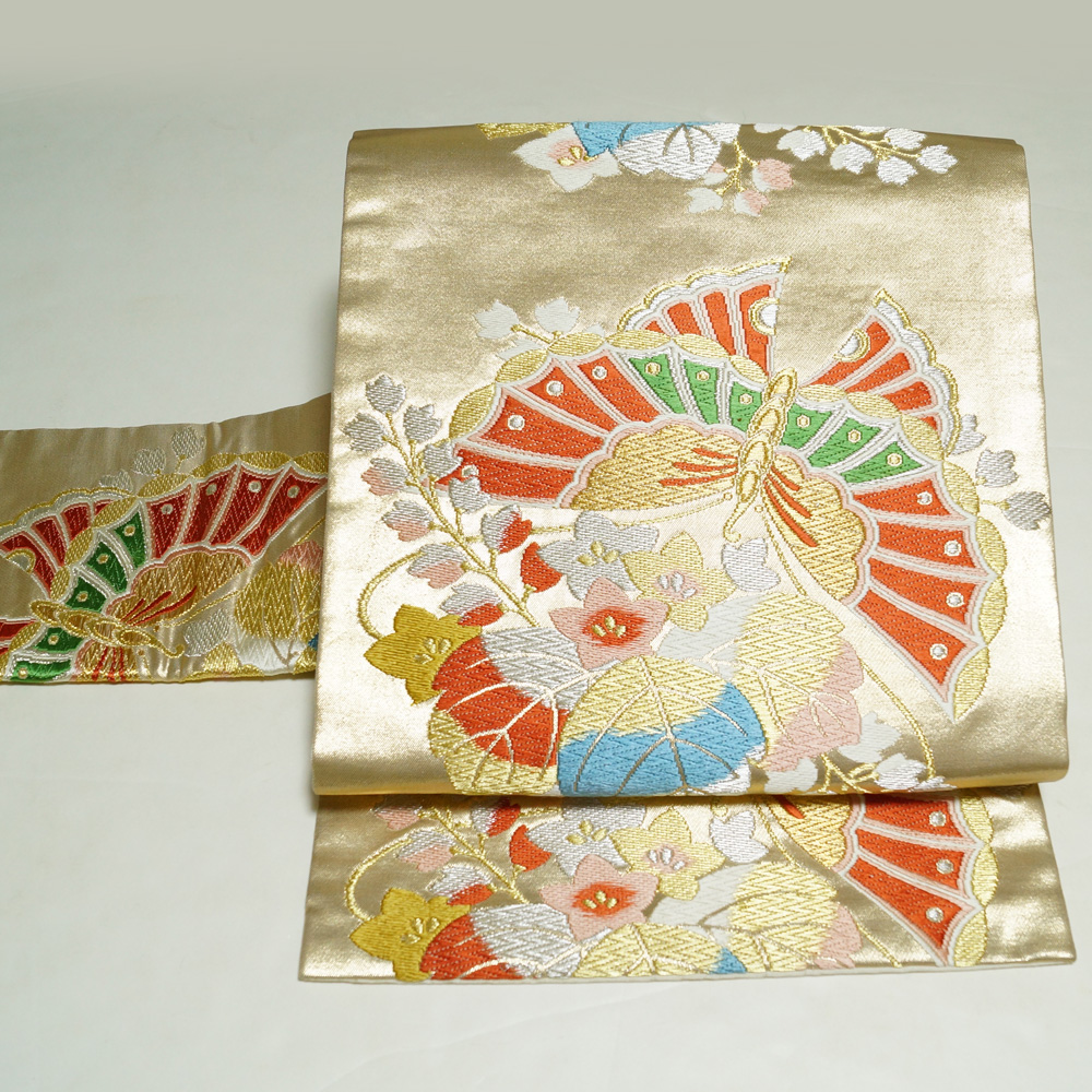 | 状 態 | ※ランク3 着物:衿・袖口内・上前衽・裾部に薄い着用汚れ、薄シミが少しあります。 帯:使用されており、前帯付近の金糸に酸化・黒化が少しあります。帯裏部・中抜き部に少しシミがあります。 |