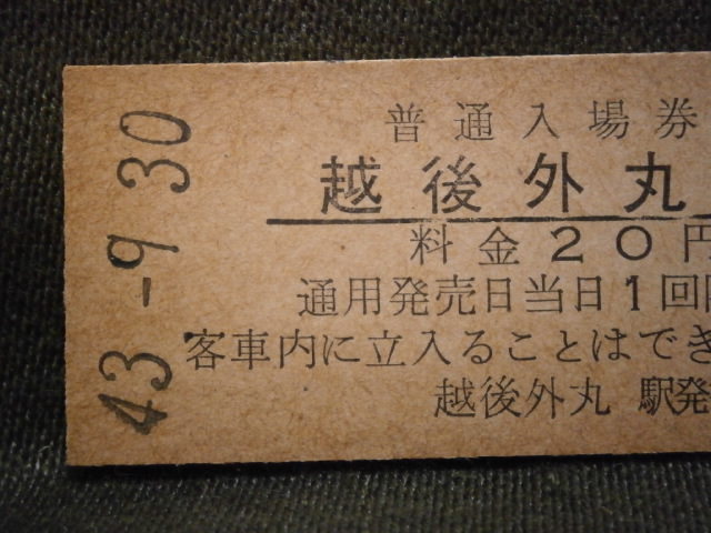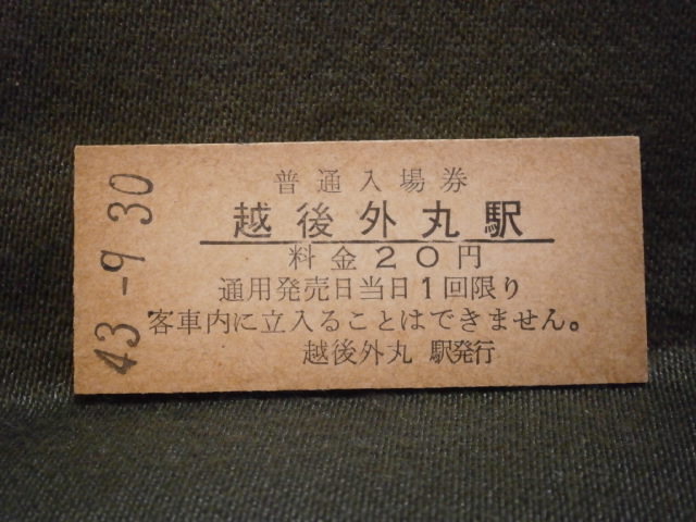 国鉄 駅名変更最終日 越後外丸駅 20円入場券(未使用)