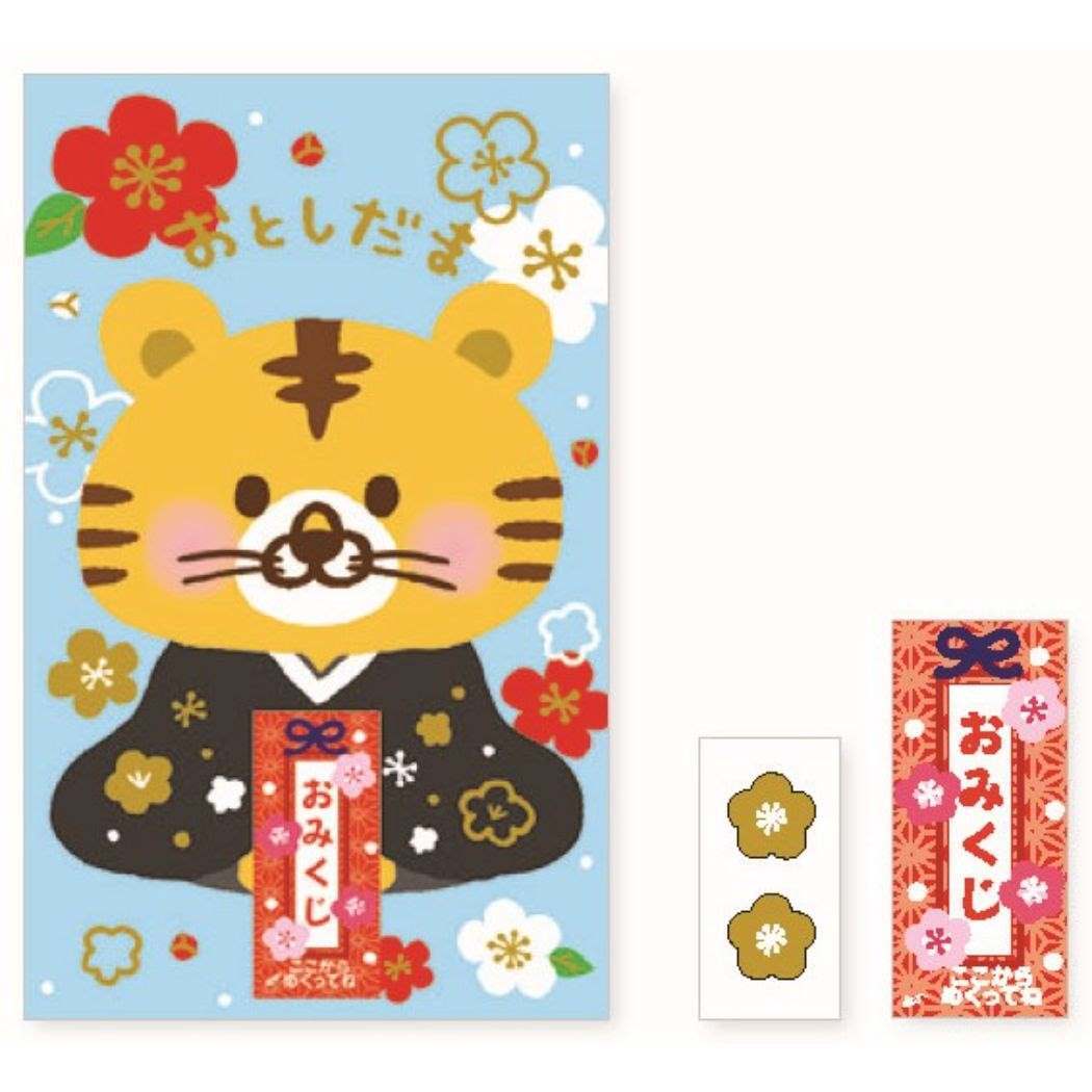 ポチ袋 おみくじ ぽち袋 2枚セット ごあいさつ 虎 ブルー 男の子 クローズピン 寅 金封 お年玉袋 封印シール付き プレゼント