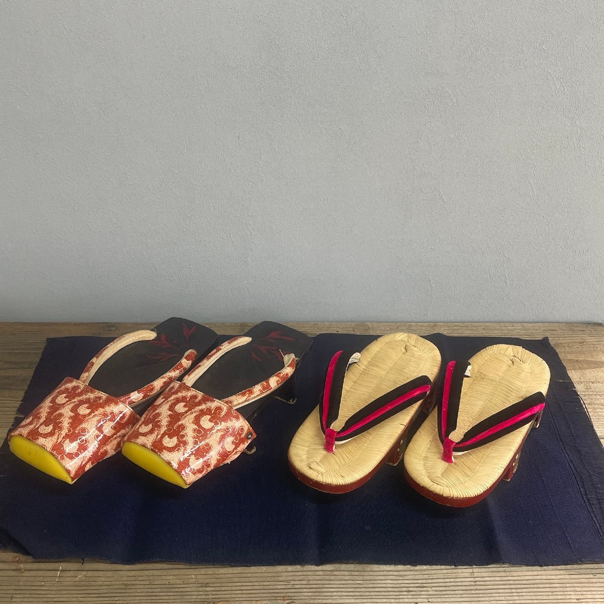 昭和レトロ 下駄 ヴィンテージ 鶴亀  Sサイズ相当 2足セット