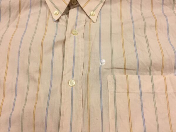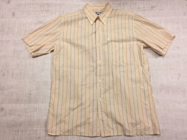courreges homme クレージュ オールド レトロ 古着 ストライプ半袖ドレスシャツ メンズ フランス製 ボタンダウン 3 ベージュ