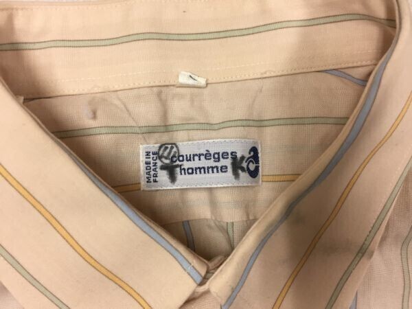 courreges homme クレージュ オールド レトロ 古着 ストライプ半袖ドレスシャツ メンズ フランス製 ボタンダウン 3 ベージュ です。