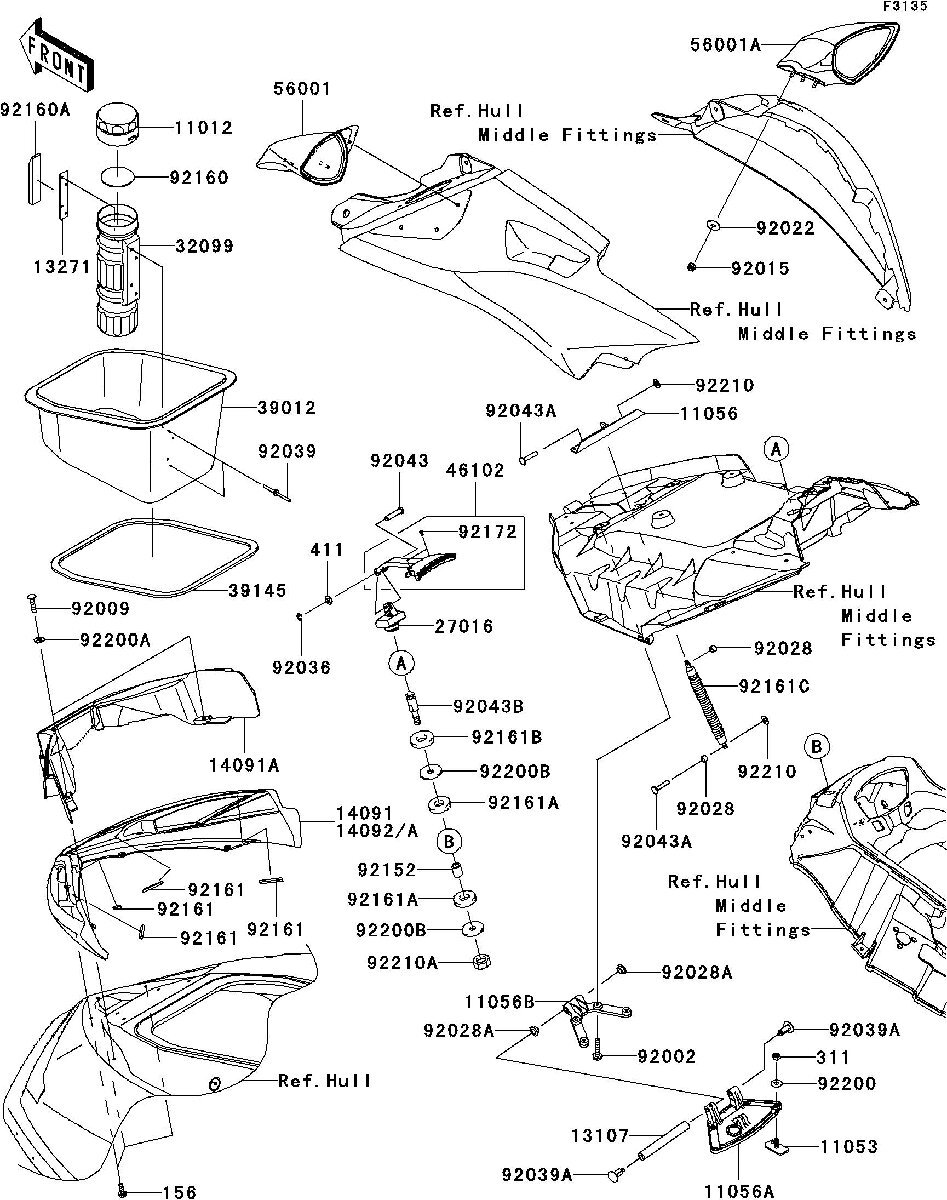 Used 56001-3728-6Z MIRROR-ASSY,RH,F.BLACK (WITH DEFECT) Kawasaki [K3911-33]