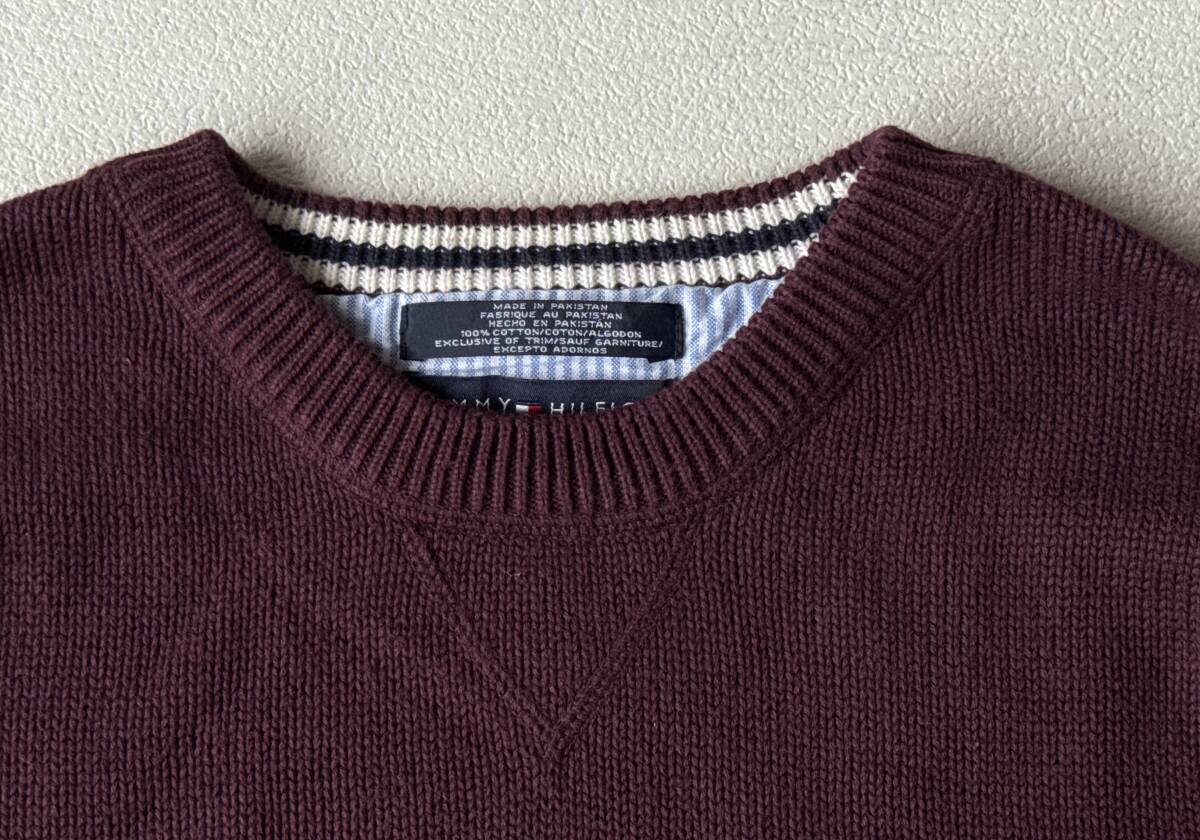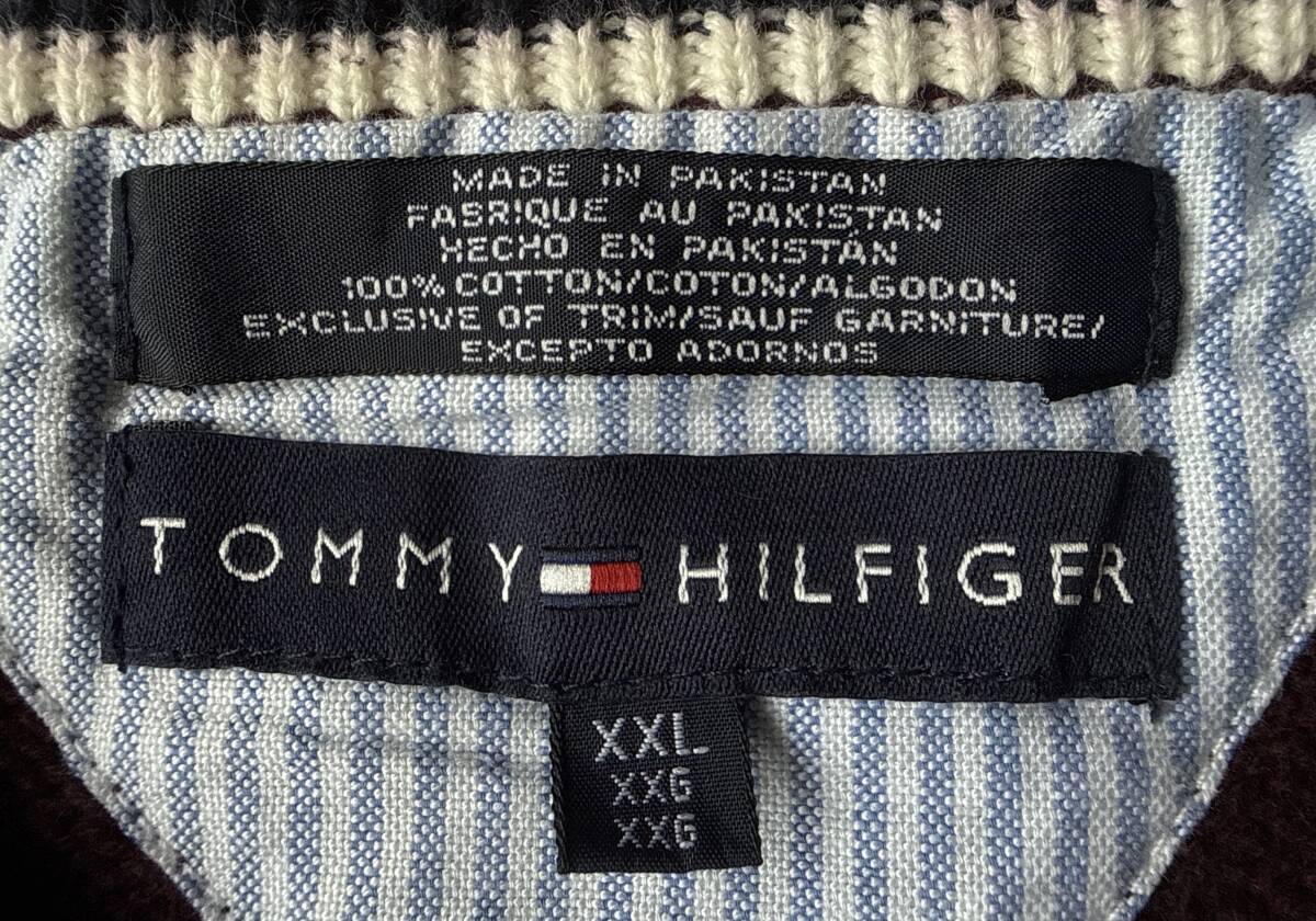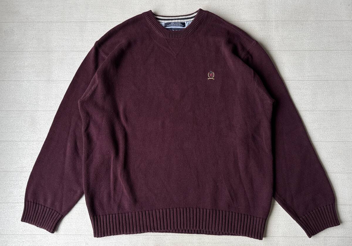 ☆送料無料☆ TOMMY HILFIGER トミーヒルフィガー USA直輸入 古着 クルーネック コットン ニット セーター メンズ XXL ワインレッド 中古