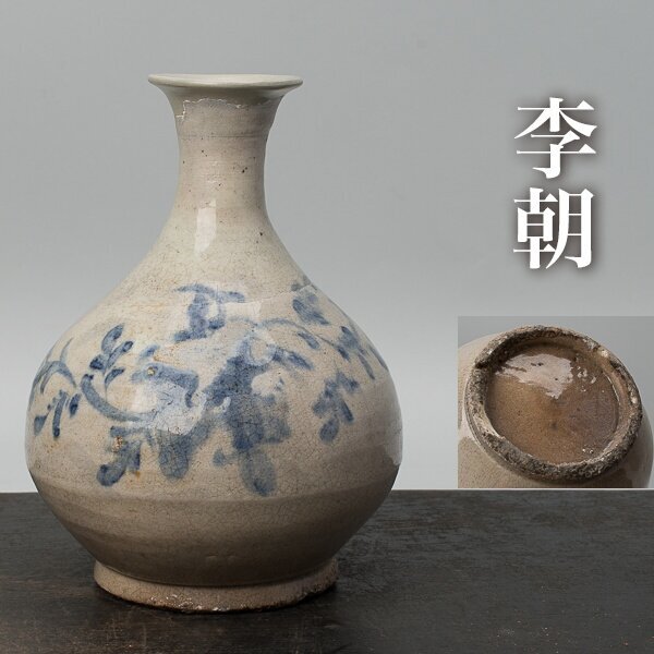 | 李朝染付徳利。李朝後期頃。箱無。 サイズは、幅約12.5cm、高さ約17cm。 くちに直しあります。 高台に欠けがあります。 状態、詳細は画像でご確認ください。 |