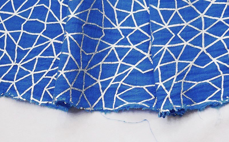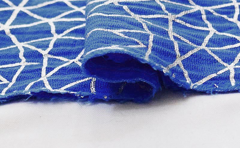 シルバーラメで幾何学模様をプリントしたダブルガーゼ。