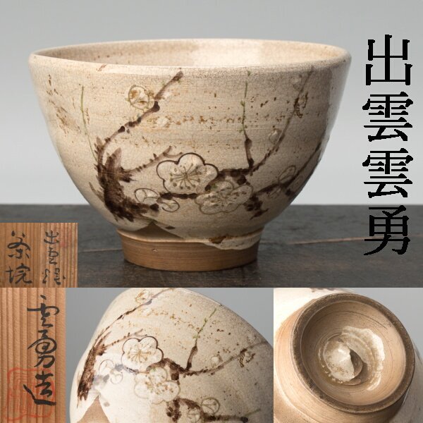 | 出雲焼、雲勇造の梅絵茶碗。共箱有。 サイズは、幅約13cm、高さ約8.5cm。 傷・直しありません。 共箱の紐がありません。 状態・詳細は、画像でご確認お願いいたします。 |