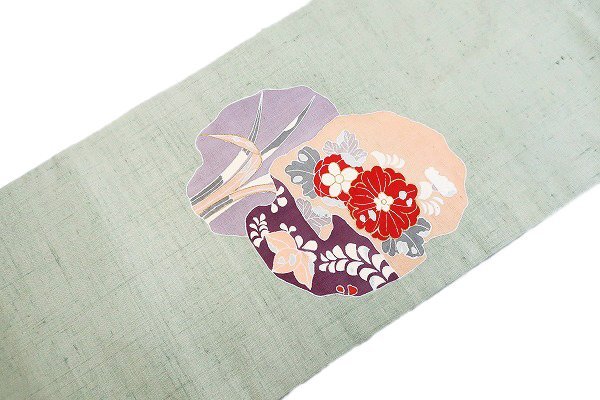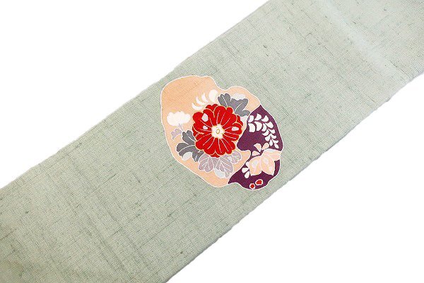 淡い緑の紬地に、草花文様が描かれた名古屋帯です。 優しいお色味と紬地の素朴な風合いが素敵な一本です。 ※未使用品です。 担当:伊藤 |