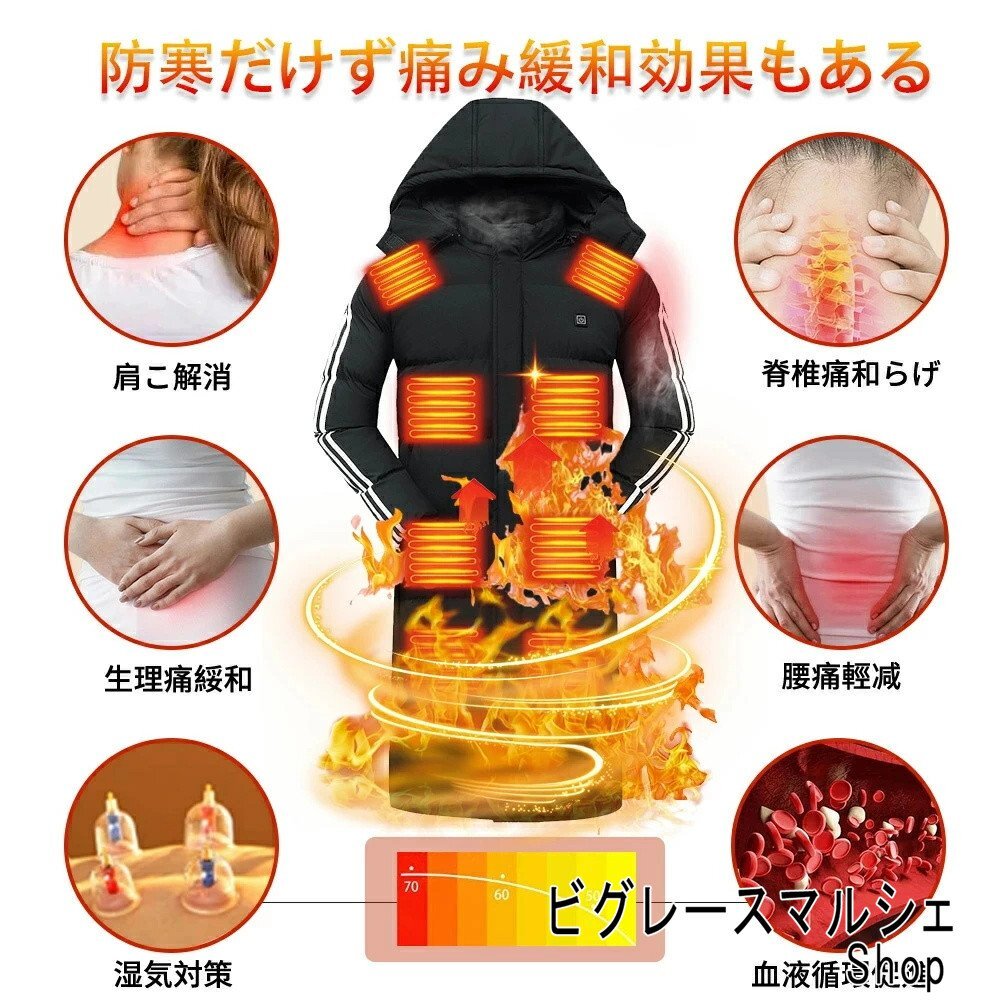 電熱ジャケット ベンチコート 11エリア発熱 3段階調温 20000mAh 電熱 メンズ 暖かい レディース 洗える パネルヒーター 中綿 hw1386.L