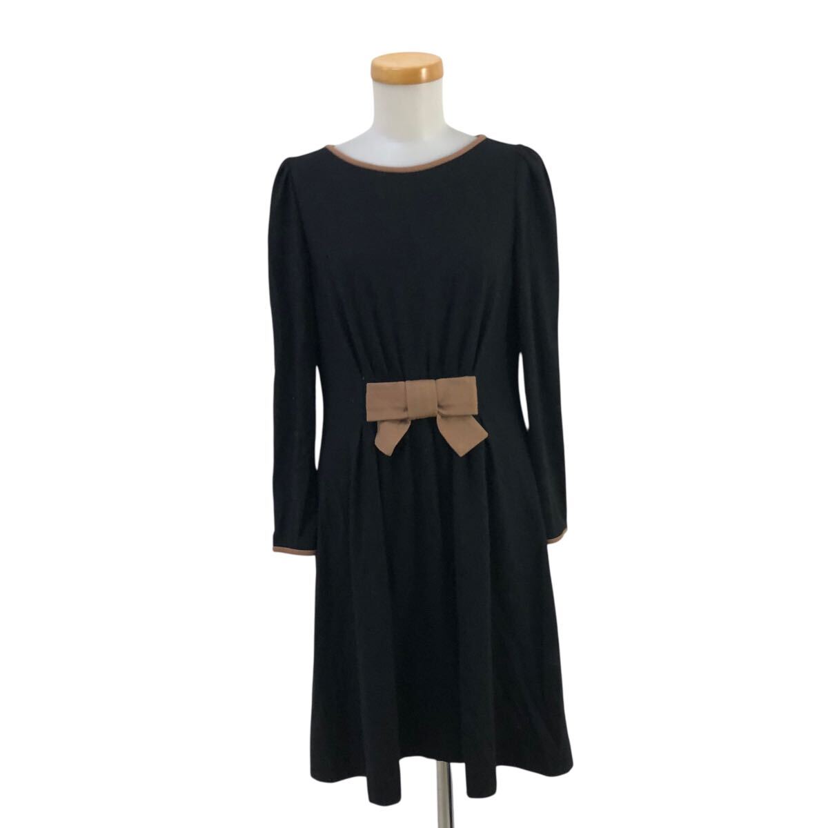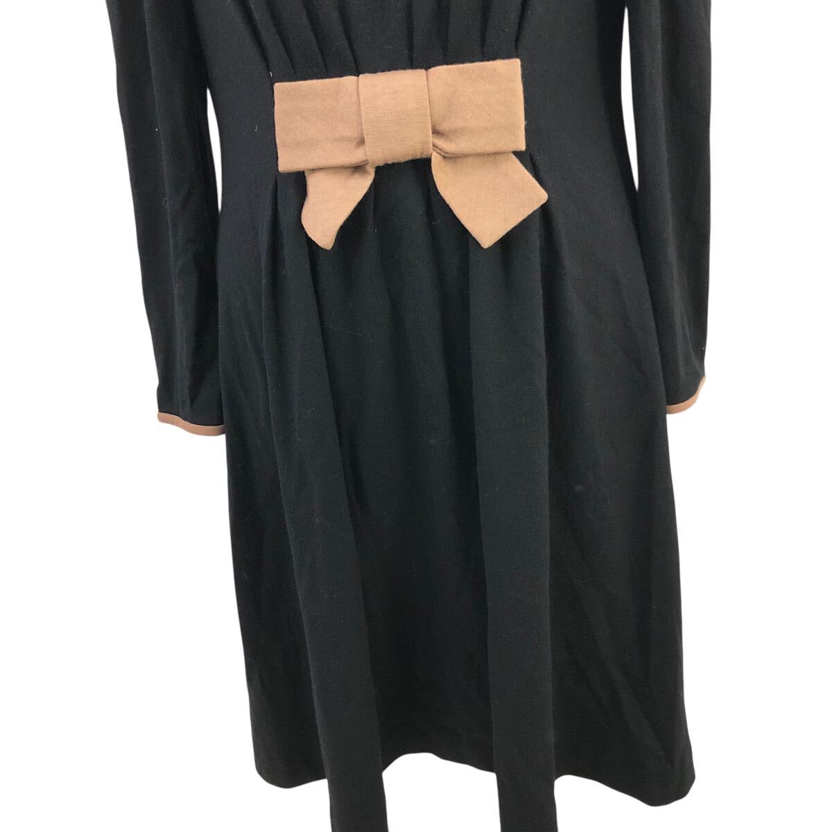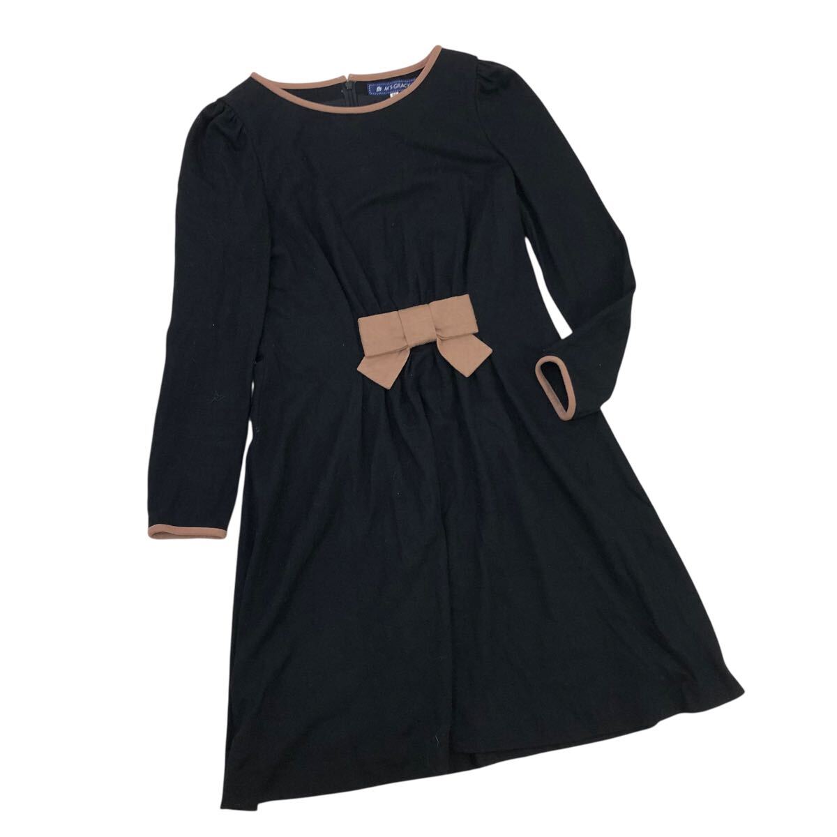 10m670-3 M'S GRACY エムズグレイシー リボン 長袖 ウールジャージー ワンピース ワンピ ブラック 黒 レディース 38 日本製