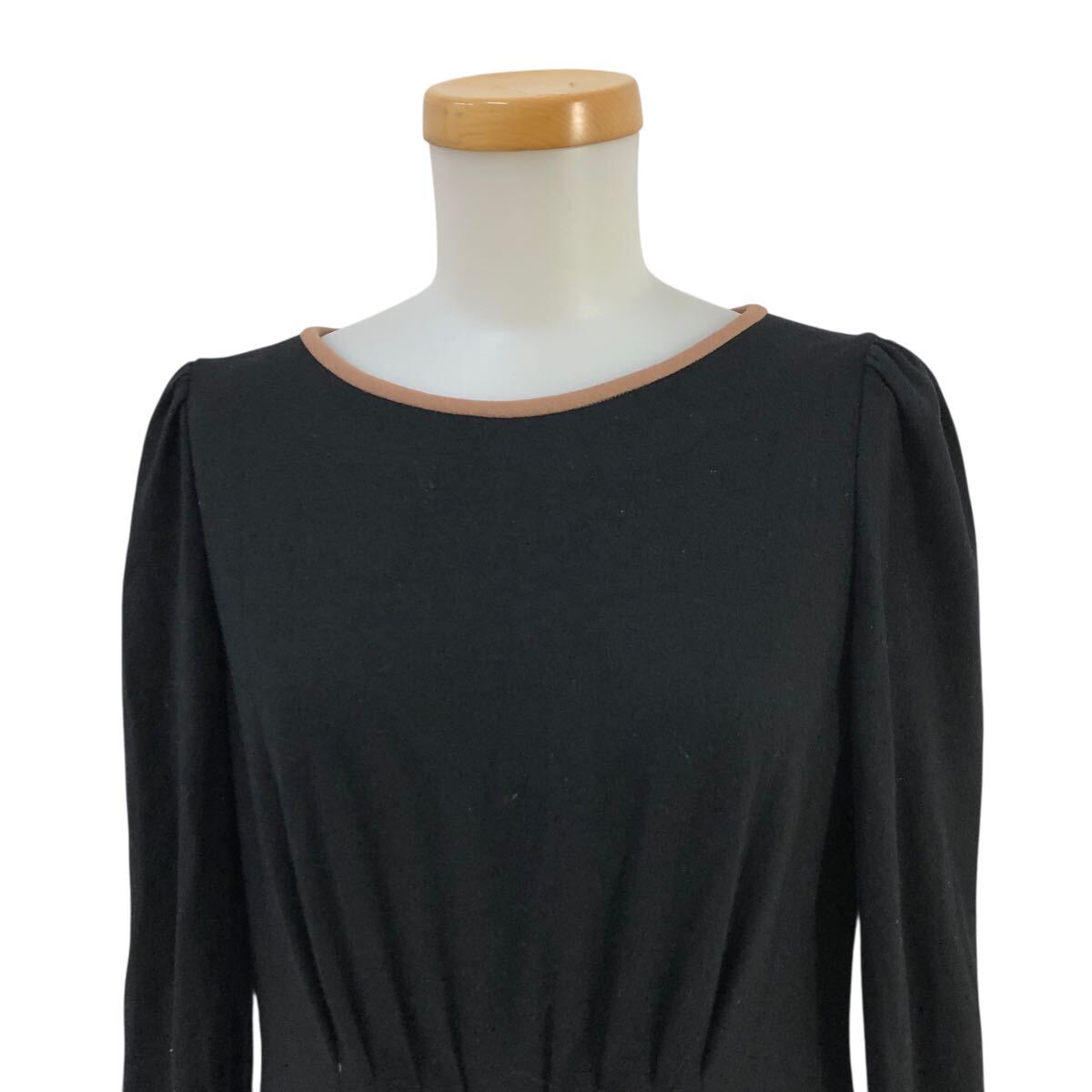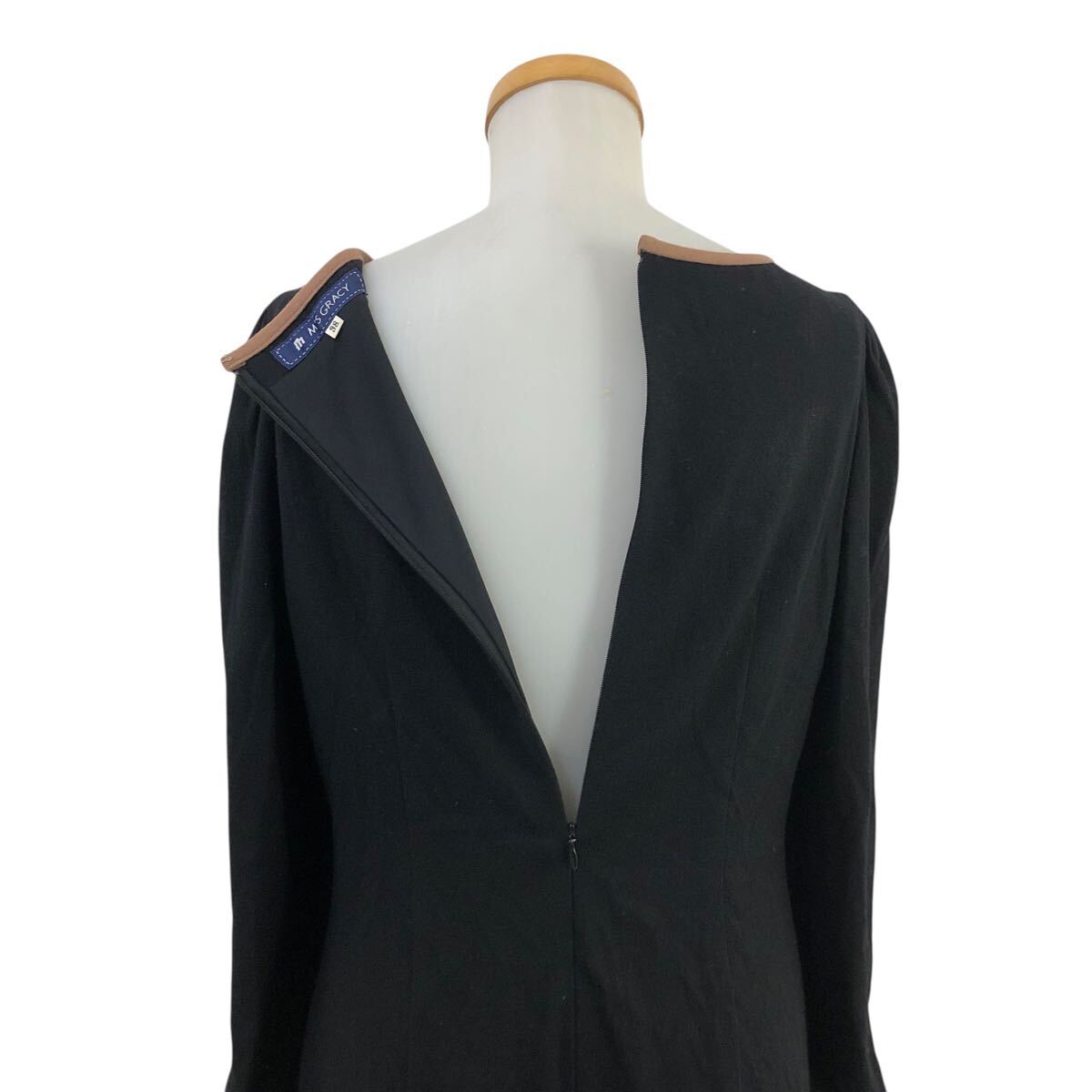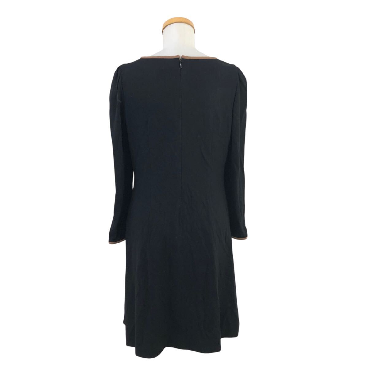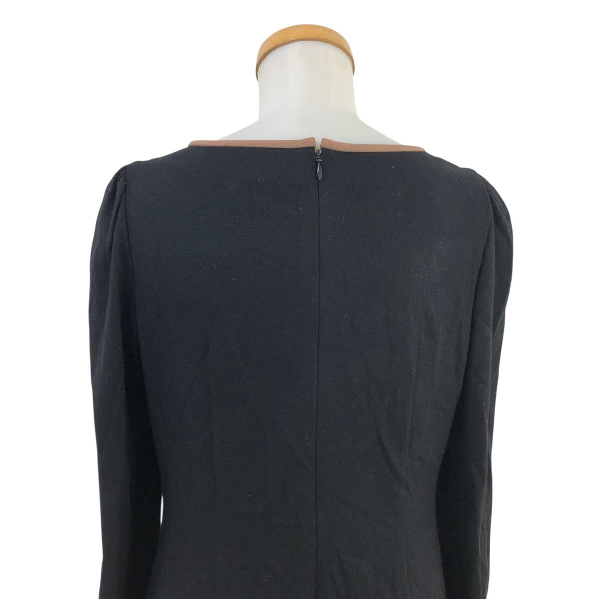 10m670-3 M'S GRACY エムズグレイシー リボン 長袖 ウールジャージー ワンピース ワンピ ブラック 黒 レディース 38 日本製