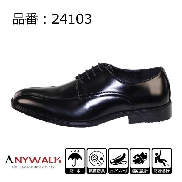メンズ ビジネスシューズ 27.5cm スワールモカ レースアップ カジュアル 4cm4時間 防水 撥水 抗菌 制菌 防臭 消臭 幅広 aw_24103