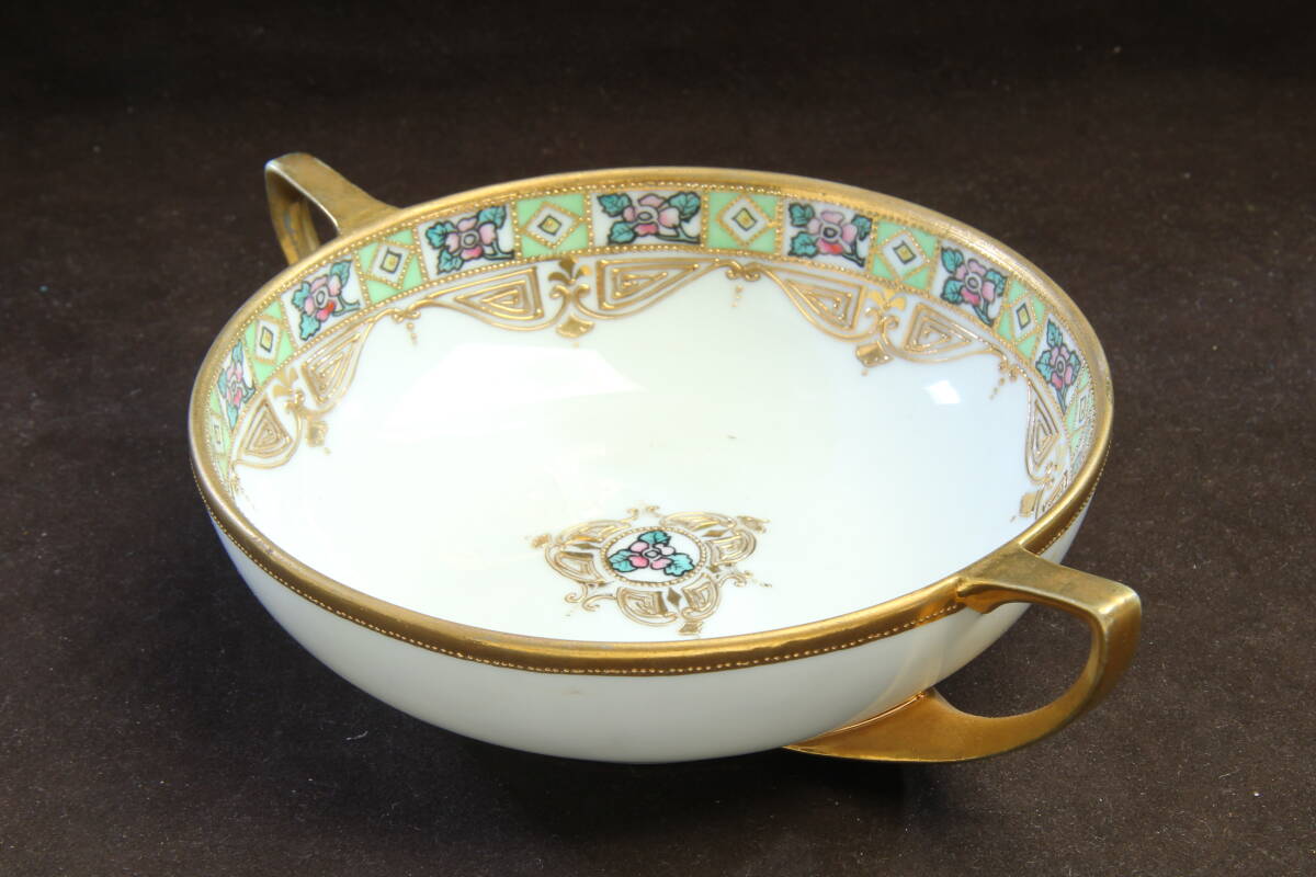 3821 オールドノリタケ ハンドル付きディッシュ  RC-NIPPON 明治 金彩盛上、花模様の縁飾り