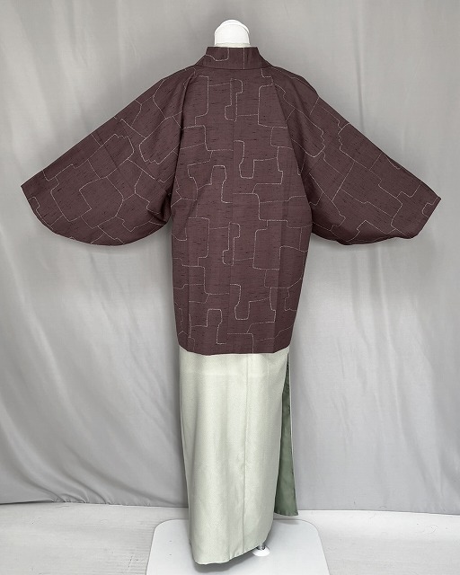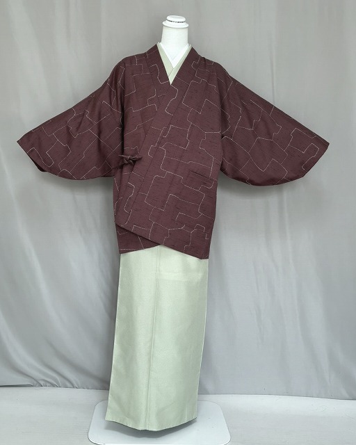 | M0902-25 河野留 お仕立済の和装用家庭着・上衣です。 外出する際に気軽に着用でき、重宝するおしゃれコート・家庭着ではないでしょうか。 一枚お持ちになると重宝することでしょう。 こちら家庭着(コート)のみの価格です。 今回、問屋様よりの在庫処分となっております。 ご理解の上でお求めくださるようお願い致します。 同柄・同生地を使用しておりますが 色・柄の出方がお写真と違う場合もございます。◎ お色・柄は、うすめのあずき色系の地に白色系にて線などの柄があります。 裏は肩裏のみとなっております。 ポケットは左側にポケットが付いております。 | |||||||||||||