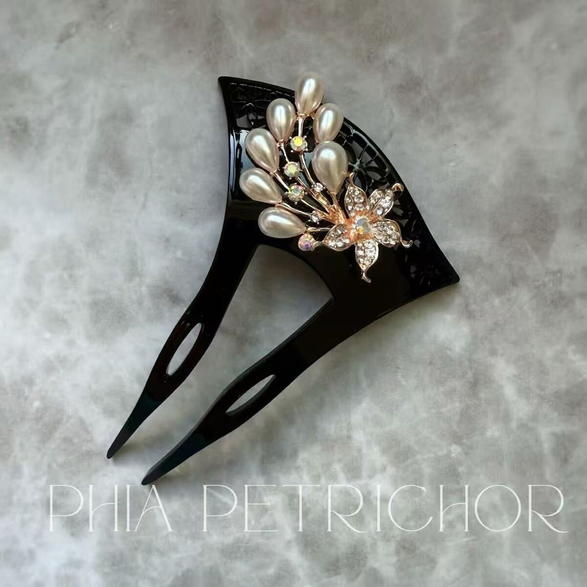 ^ ^細部まで拘った美しいバチ型簪成人式、卒業式 や結婚式などの華やかなシーンにぴったりのかんざしです()丁寧な作り込みがしてあるので、高級感があります。(☆☆)