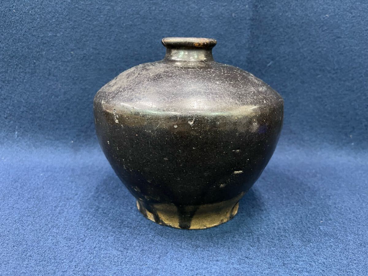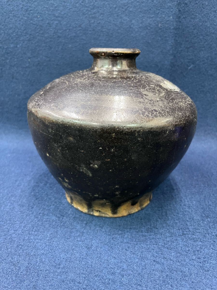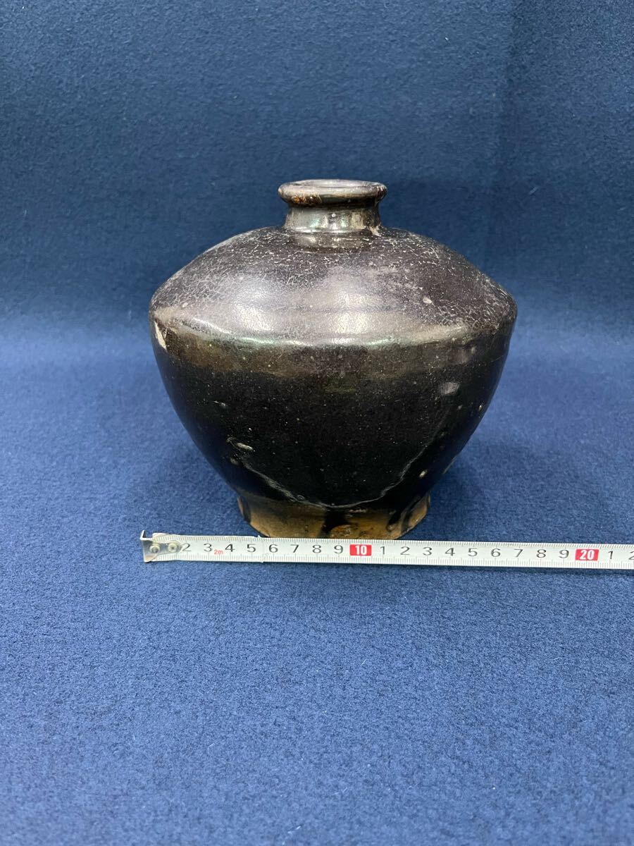 aboc102503 古美術 黑釉 壺 花器 置物 時代物 中国美術