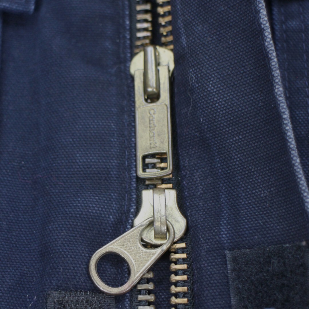 丈夫なコットンダック素材を使用し、裏地には中綿入りのキルティングライナーを採用。防寒性と耐久性に優れたワークジャケットです。