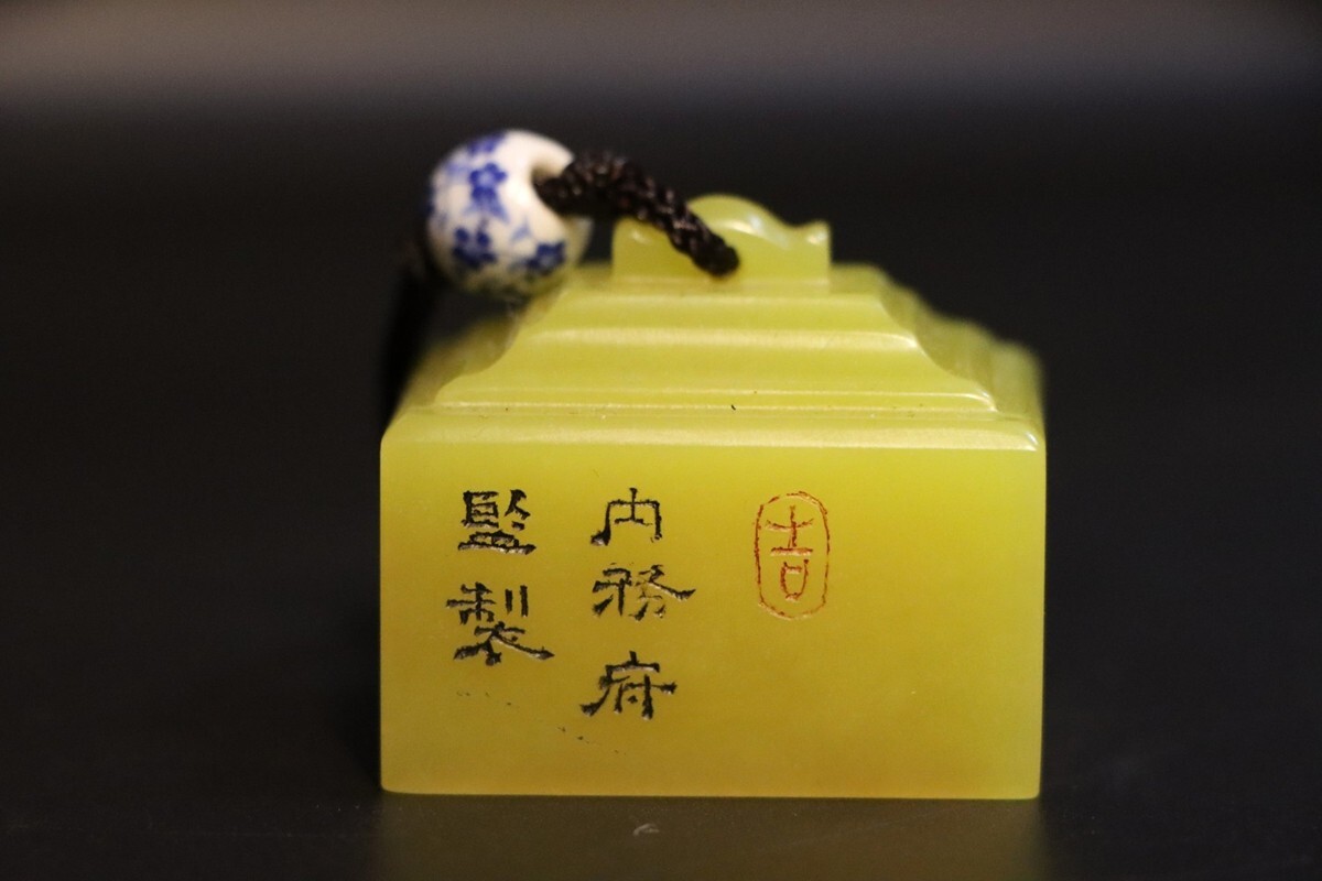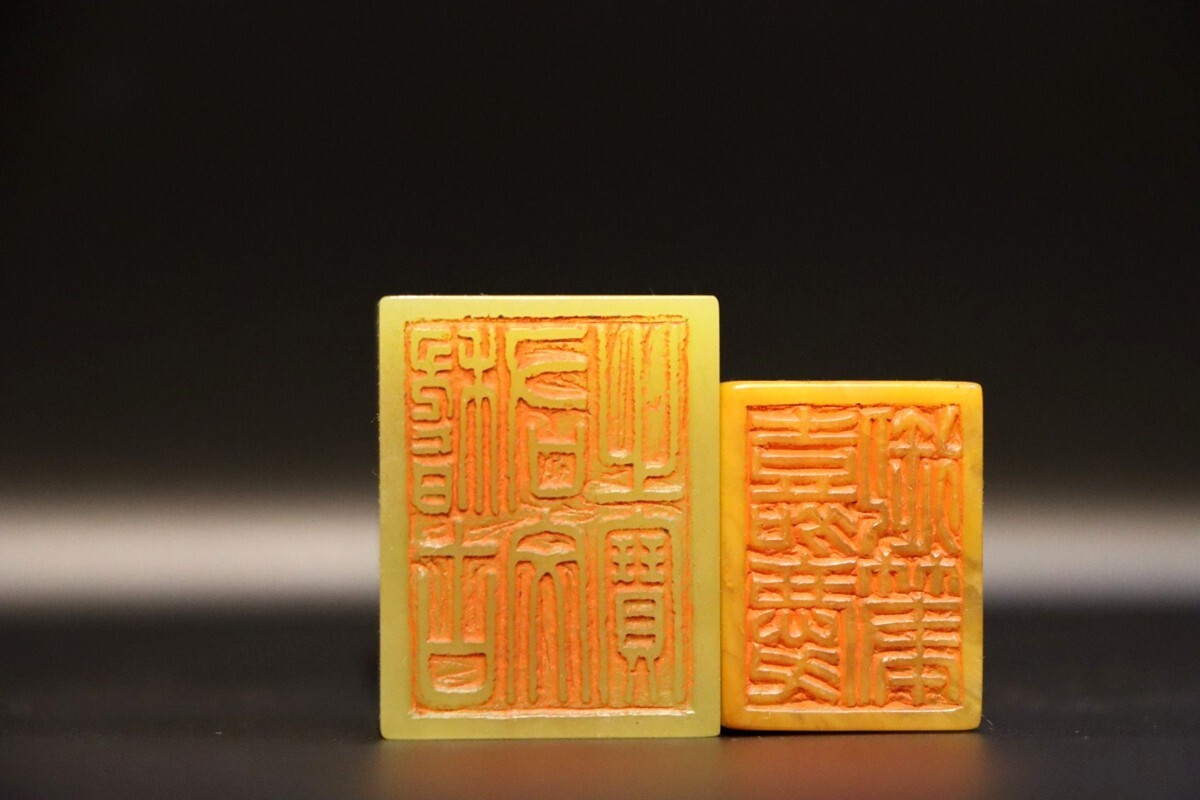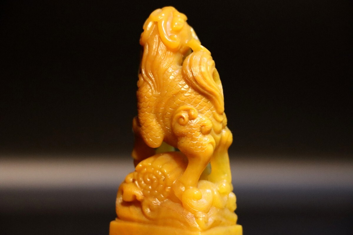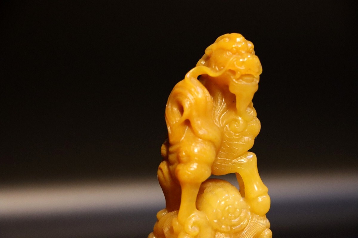 「清 内務府造弁処製 老寿山石 田黄石彫り 麒麟 対印 印鑑」極細工 擺件 古賞物 中国古美術 旧蔵出