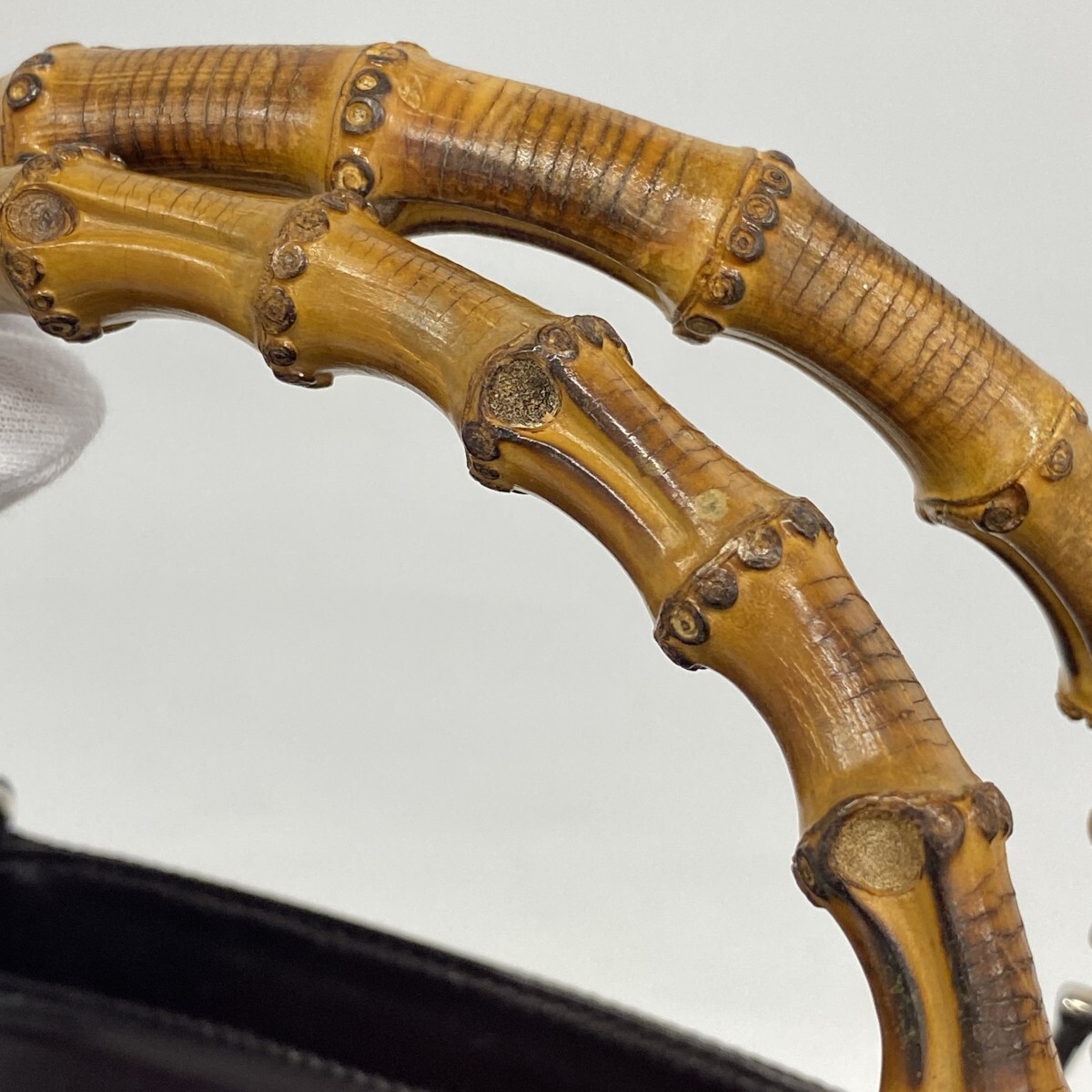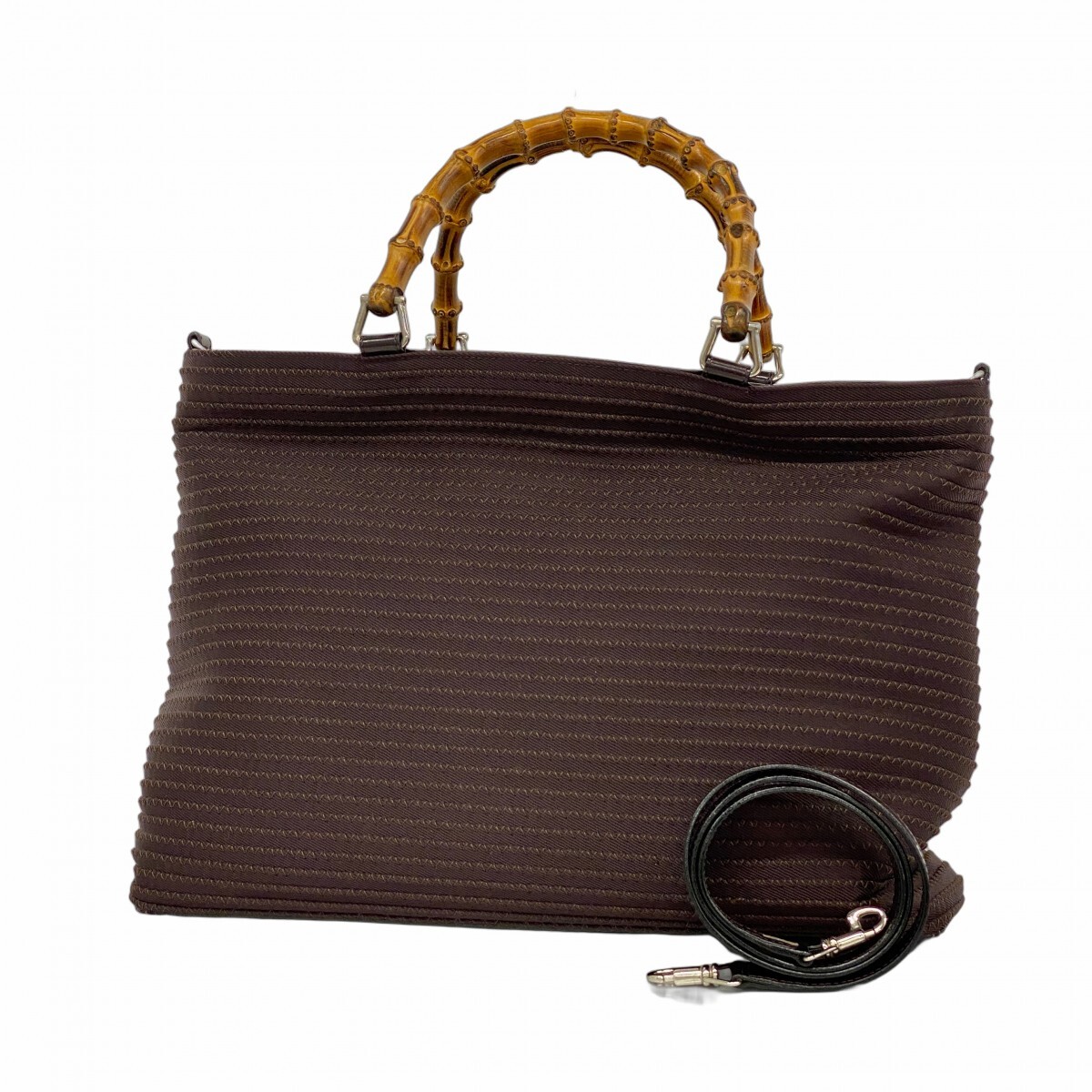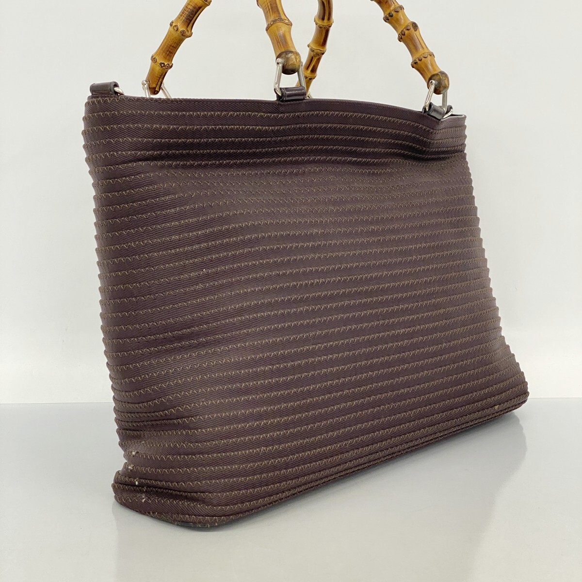 ★SALE【5mb2024-h】グッチ ハンドバッグ バンブー 002 1998 ナイロン ブラウン シルバー金具 2wayバッグ【中古】レディース