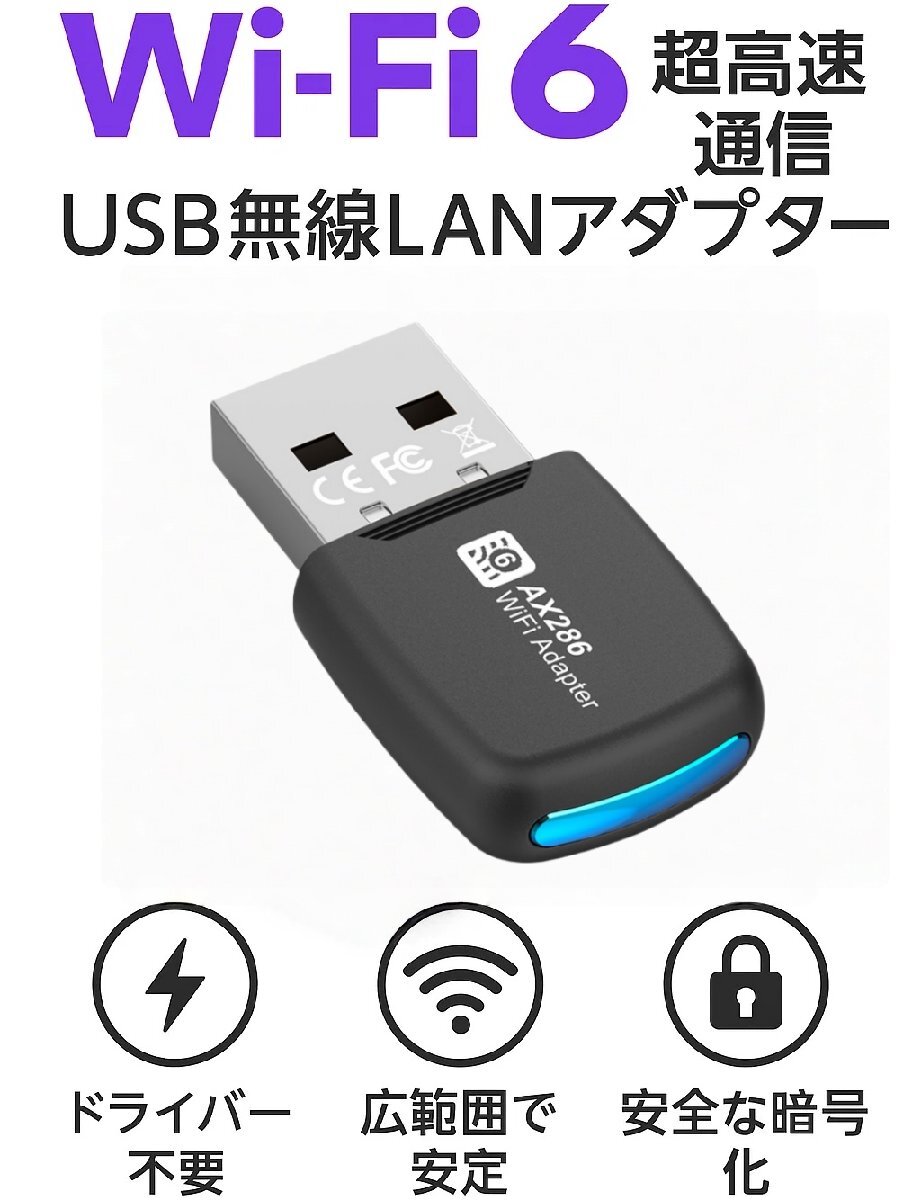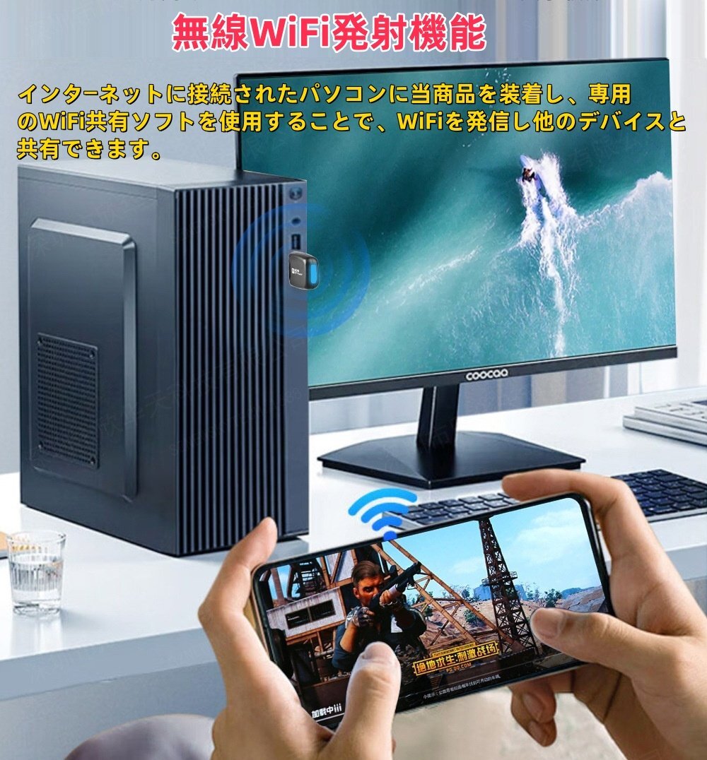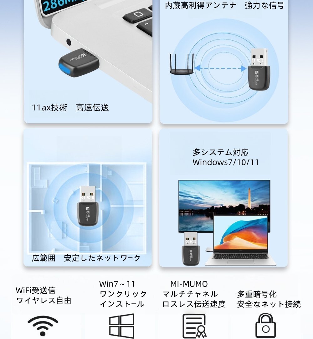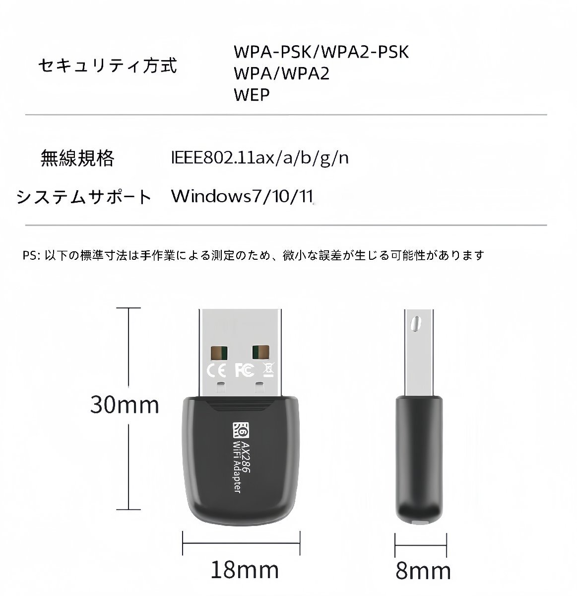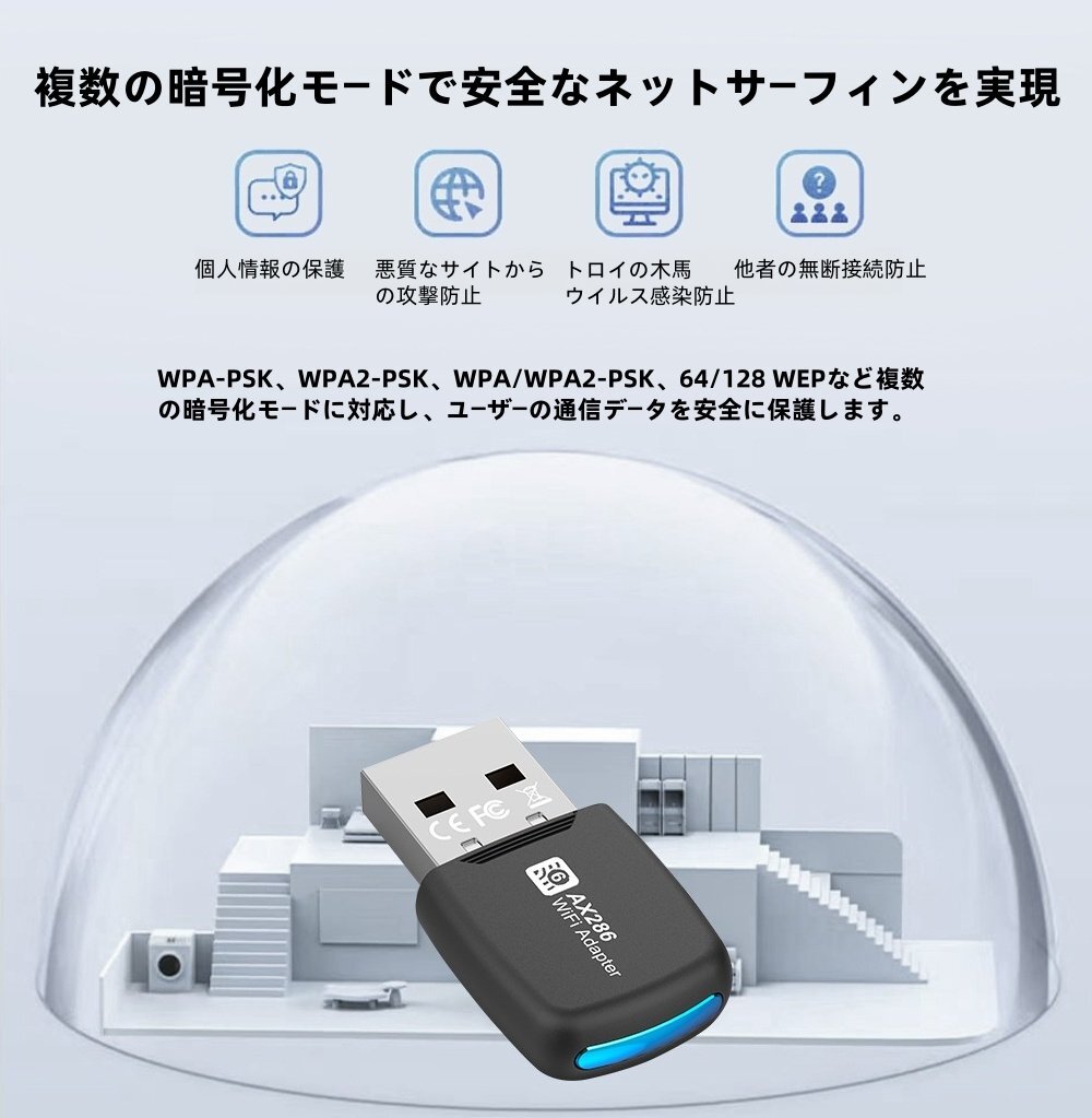 WIFI6 USB無線lan子機 ドングル 2.4GHz 無線LANアダプタ PC パソコン USB無線LANアダプター 高速WiFi受信送信