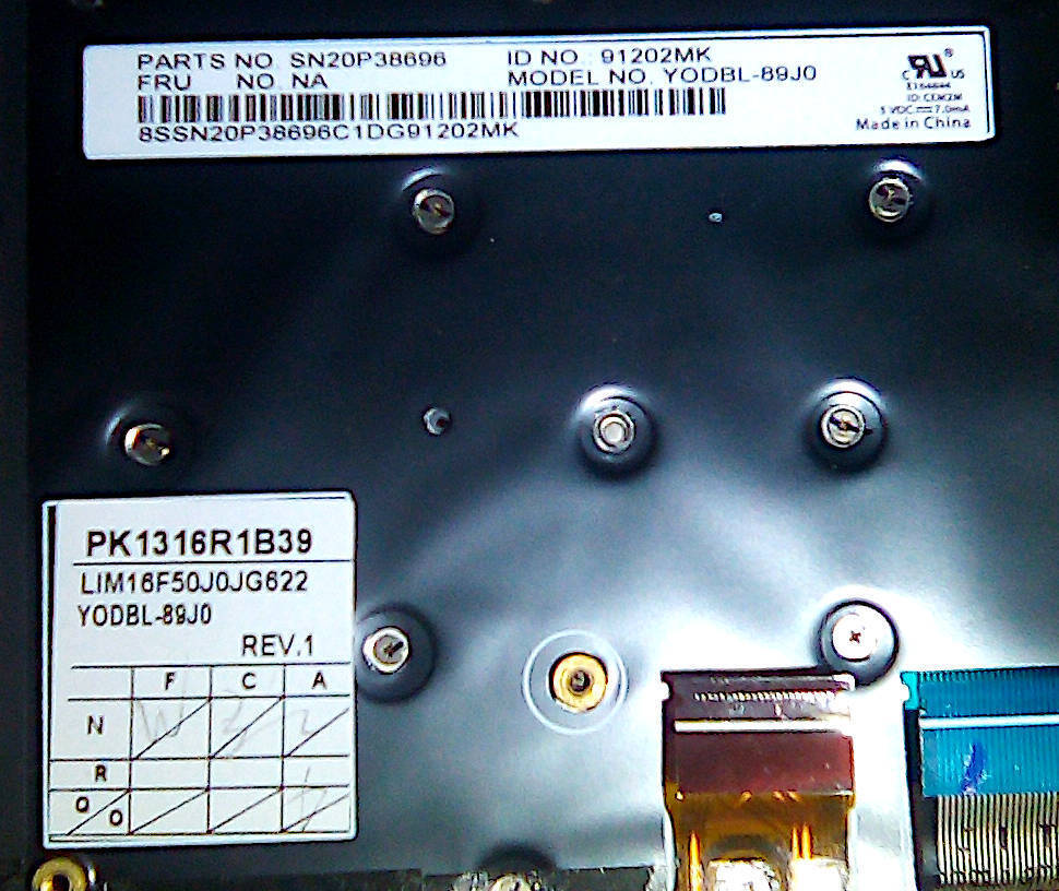 "Thinkpad X1 Carbon 6th gen type 20KG (2018年)" からの取り外し品。