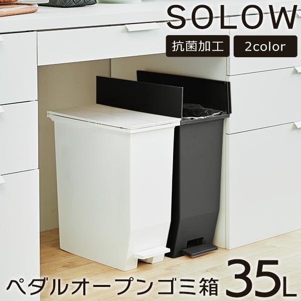 35L ゴミ箱 SOLOW ペダルオープンスリム ごみ箱 キャスター付 ふた付 分別 ダストボックス 新生活 送料無料- 140S◇ SOLOWゴミ箱35L:黒