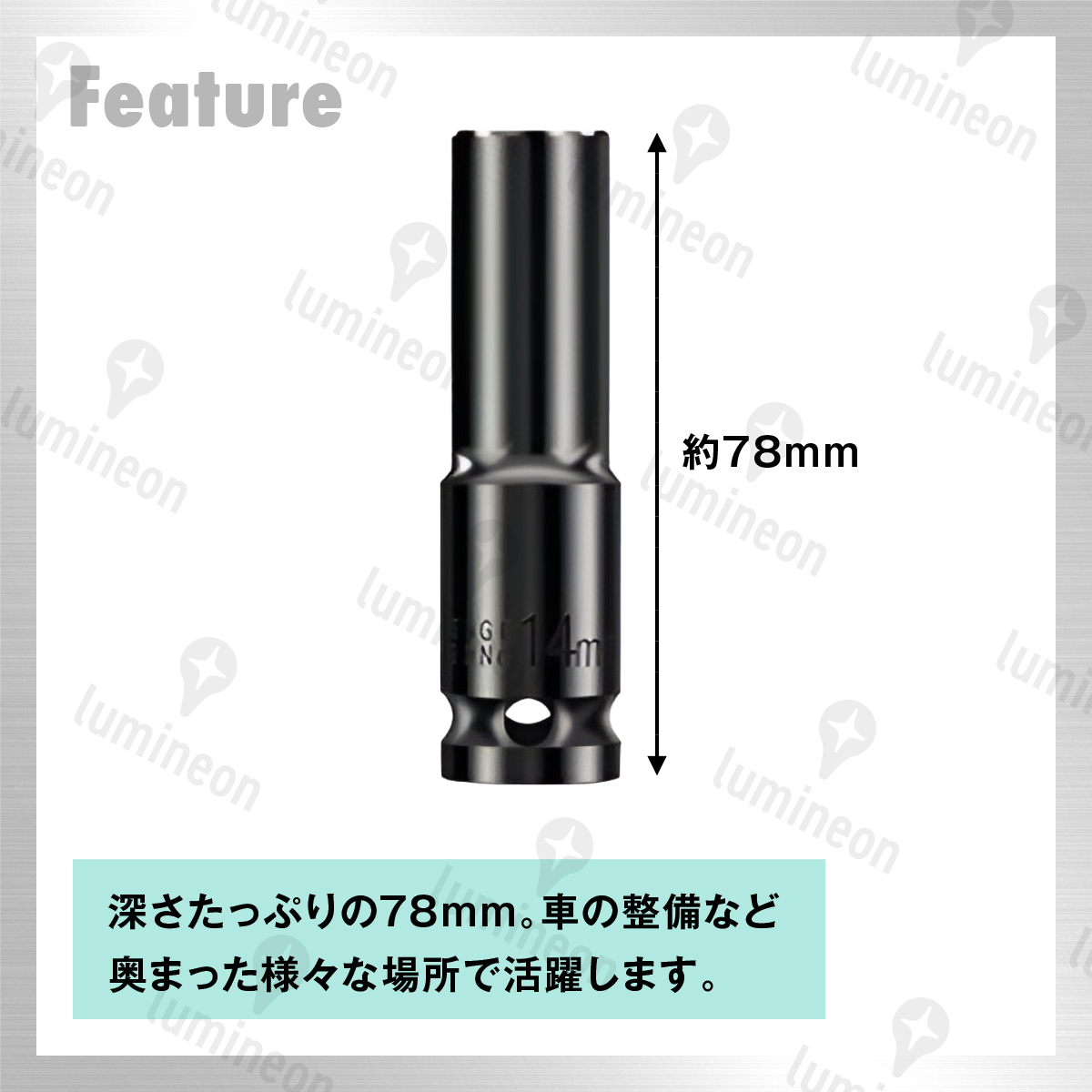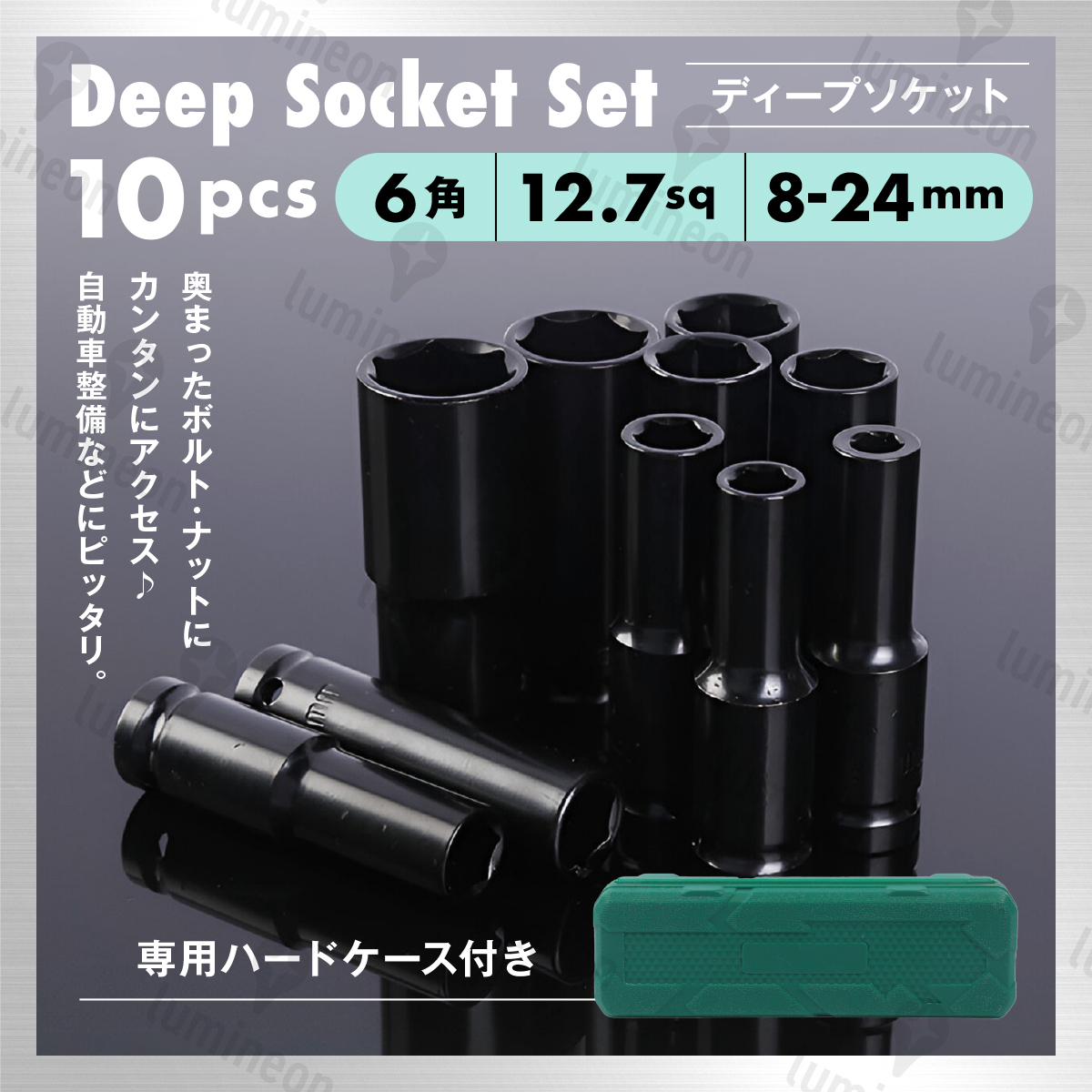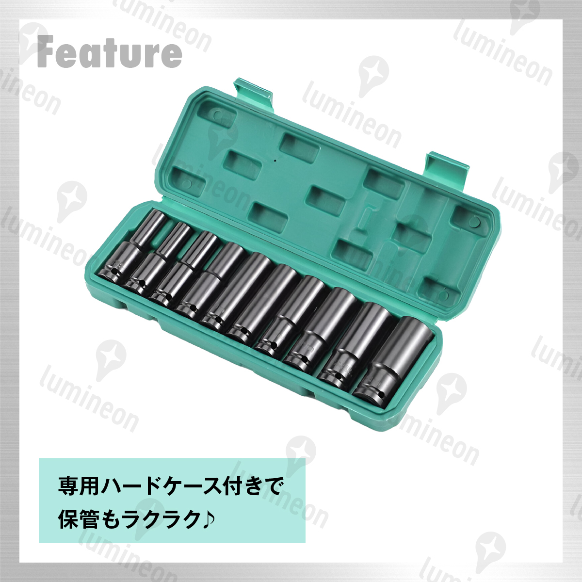 インパクト 用 レンチ ソケット トルク セット ディープ ロング アダプター 8mm 10mm 13mm 17mm 22mm 24mm 12.7 六角 ビット 工具 g296