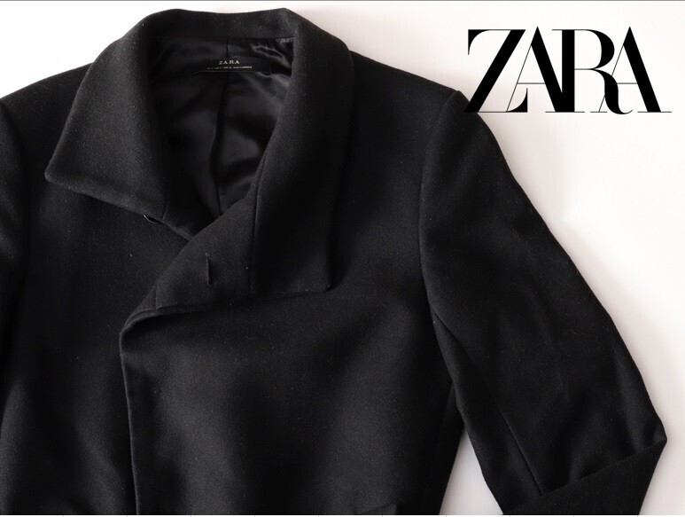 中古★ ZARA ザラ メンズフォーマルウールロングコート★Sサイズ【5686/618】ブラック黒【本物保証】綺麗めファッション★細身ジャケット