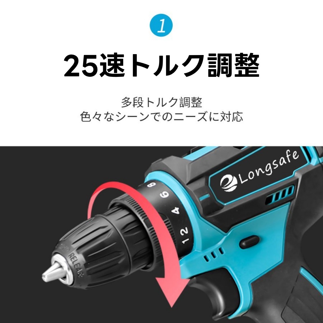 【設定豊富ライトあり】25段クラッチで豊富なトルク設定可能ライトあるため暗い所も活躍でき家具の分解や組み立も簡単になります。