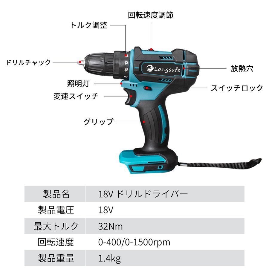 (A) 01 ドリルドライバー makita 互換 充電式 電動ドリル ドライバー マキタ 14.4V 18V バッテリー