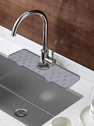【お得】カラーは商品画像の1枚目をご確認ください。汚れが目立ちにくい蛇口シリコンマット【使用場所は様々】 キッチン、食堂、浴室、洗面台など様々な場所で使用可能 【水撥ね以外にもこんな使い方も】 横幅が37cmございますので、 ・食器用洗剤 ・石鹸 ・スポンジ ・ブラシ ・グラス などを蛇口周りに常備する際にも便利にお使い頂けます。