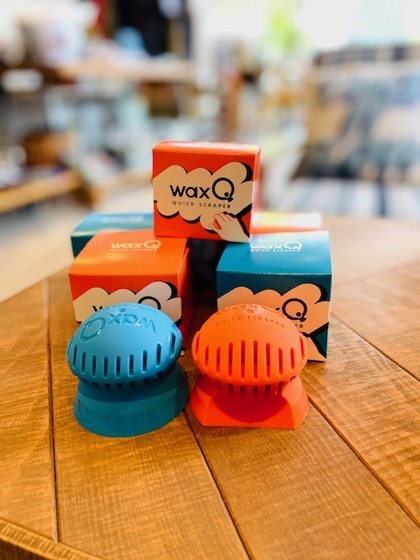 『WAX Q』 新形状のサーフボード用WAX OFFツール、「WAX QUICK SCRAPER」が新登場! どの方向にもWAXが剥がせる円形と、集に効率の良いフラットの面を組み合わせたこだわりのデザインです。 手に馴染み易く、ショート、ロング問わず、素早くWAX OFFが出来ます!