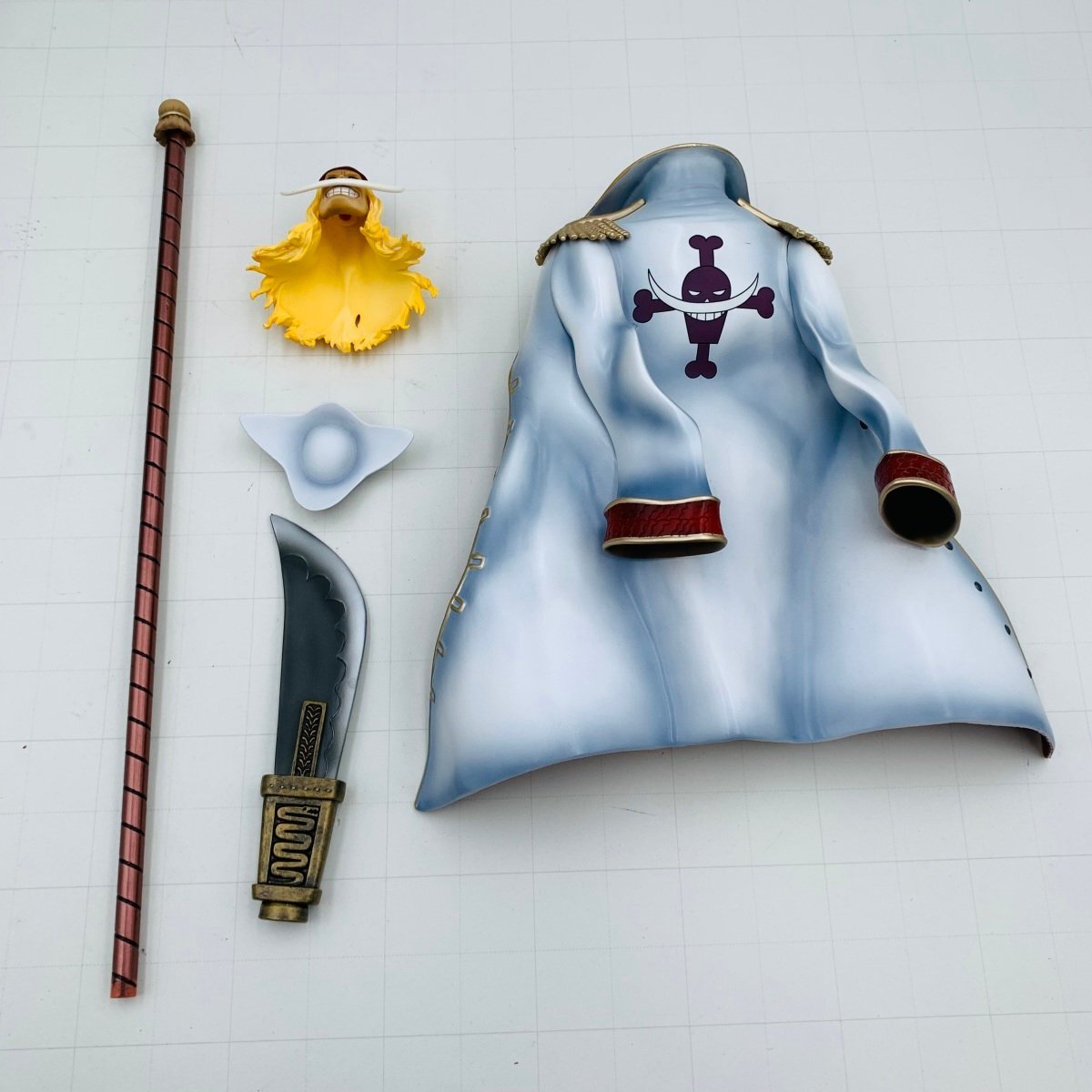 頭部パーツ(長髪).のヒゲに破損によるグラつきがございます。フィギュア本体の首に頭部パーツのジョイントがしっかりとハマりません。