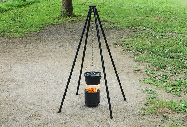 別売りの「ダッチオーブン」や「クワトロポッド」などの別売りアイテムと組合わせると、吊り鍋料理も楽しめます。