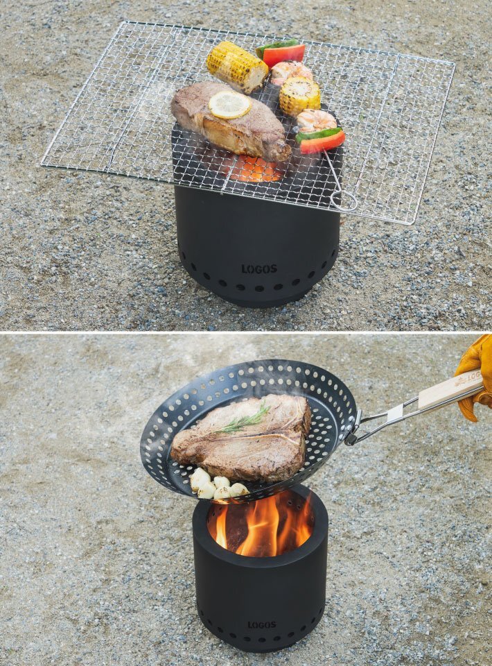 焼き網をセットしてお肉や野菜などの調理も可能。