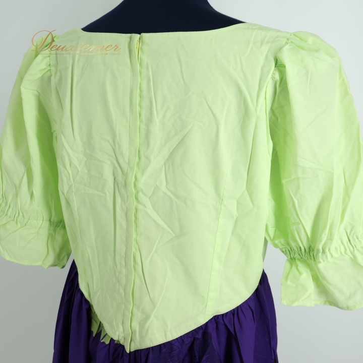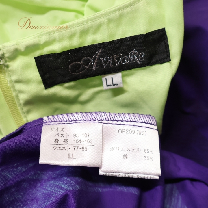 | 【商品名】フラダンス衣装 ワンピース ドレス 【サイズ】LL表記 平置き実測:総丈約123cm(裾~肩部まで)、肩幅約35cm、身幅約51cm、ウエスト約44cm ※実測の為、多少の誤差はご了承ください 【仕様】 ・背面ファスナー仕様 ・伸縮性無し 【品質表示】 ポリエステル65% 綿35% ------------------------------------ 【ポイント】 ▽Avivare アビバーレ ▽パープル×グリーン×ブルー ▽ハワイアンプリントで華やかに ------------------------------------ 【撮影時使用トルソー】 種 類:女性用トルソー9号 (一般的に使用されるサイズです) サイズ:肩先~床約135cm(身長約160cm)、肩幅約37cm、バスト約88cm、ウエスト約66cm、ヒップ約89cm |