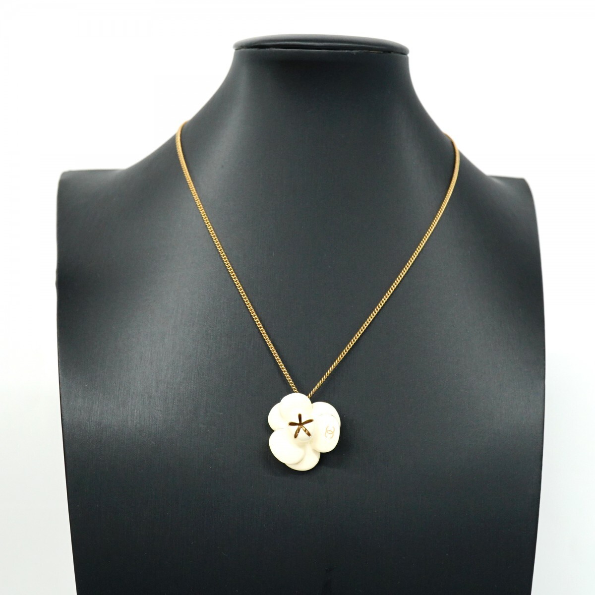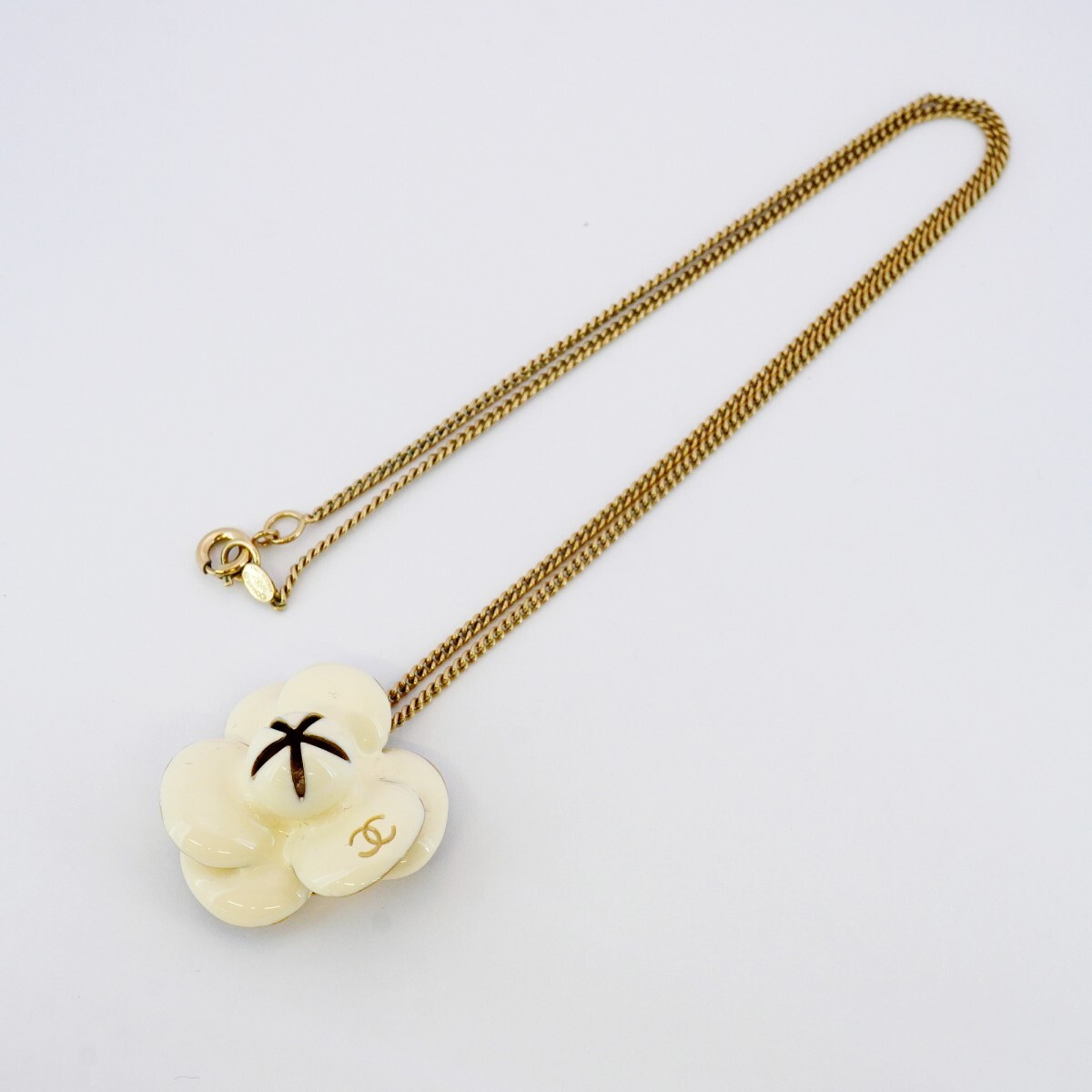 【5jmb0308】シャネル ネックレス ココマーク カメリア GPメッキ ゴールド アイボリー【中古】レディース