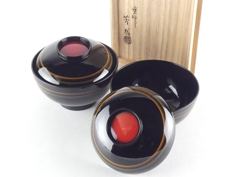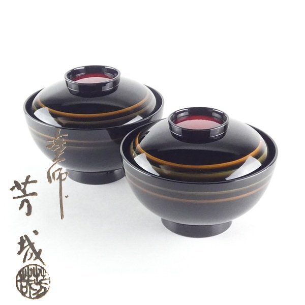 【都屋】塗師 芳哉 夫婦椀 共箱 大小 吸物椀